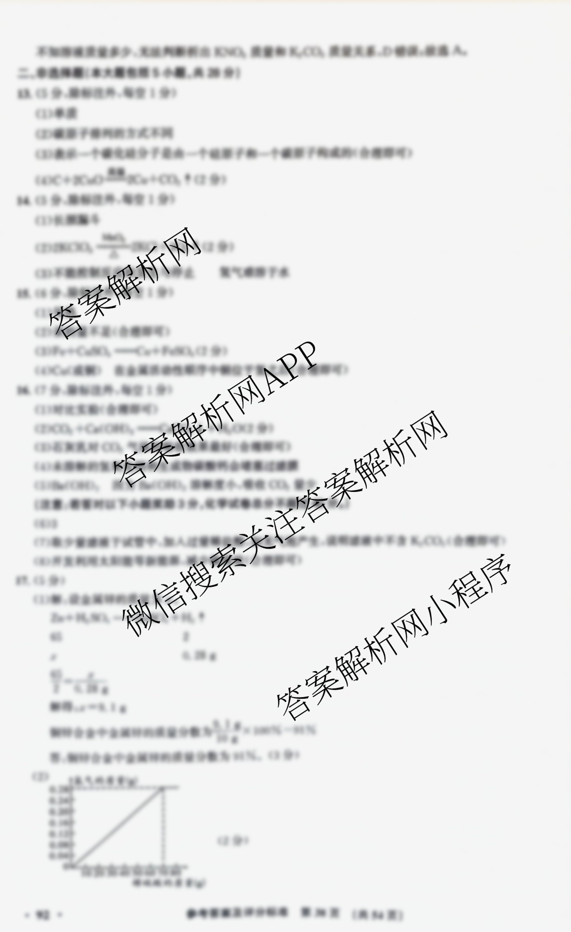 - (九年级)2024安徽中考原创模拟卷[1号卷]中考智高点夺魁卷(一)化学答案