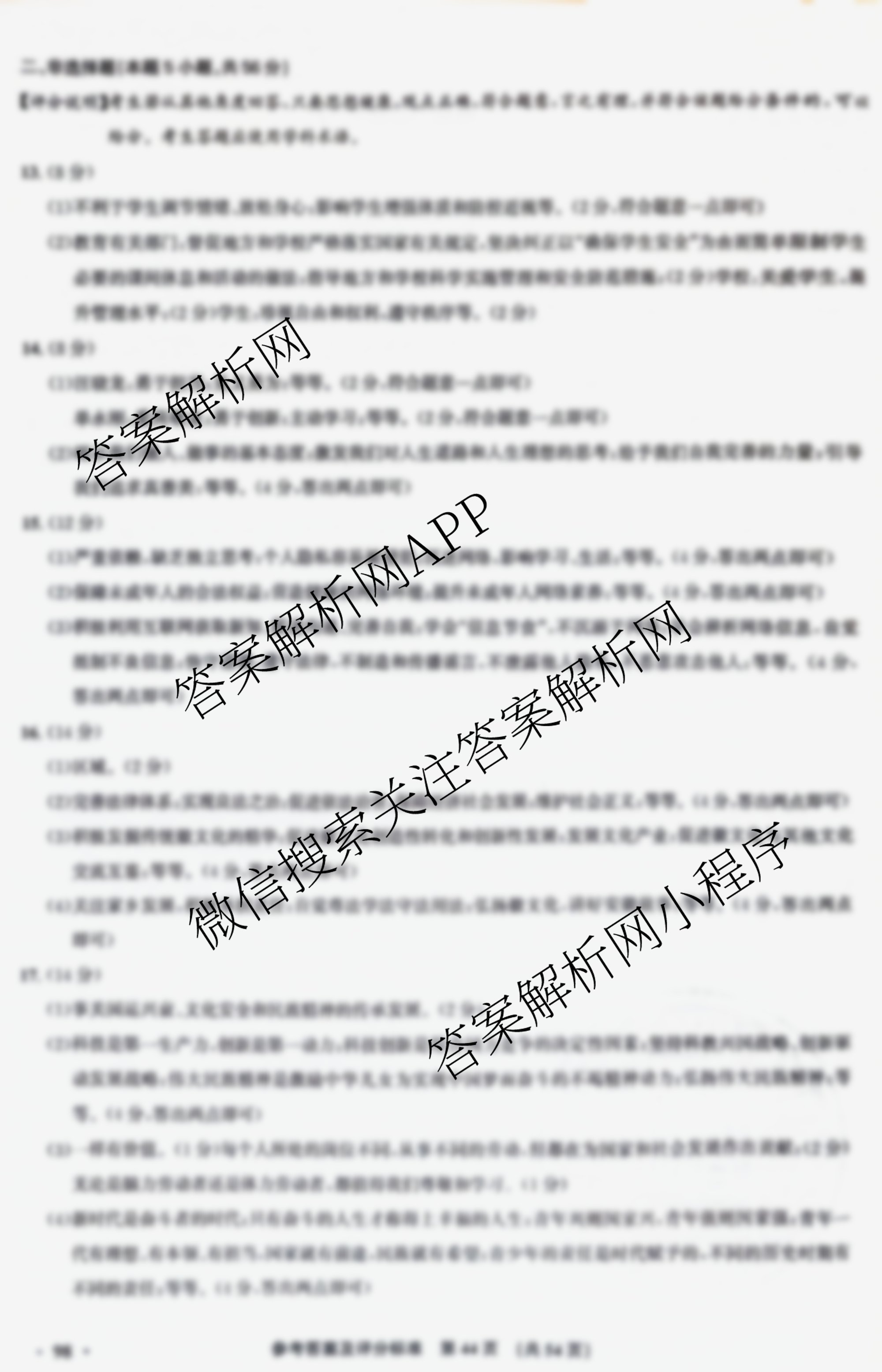 九年级2024安徽中考原创模拟卷[1号卷]中考智高点夺魁卷(一)道德与法治答案