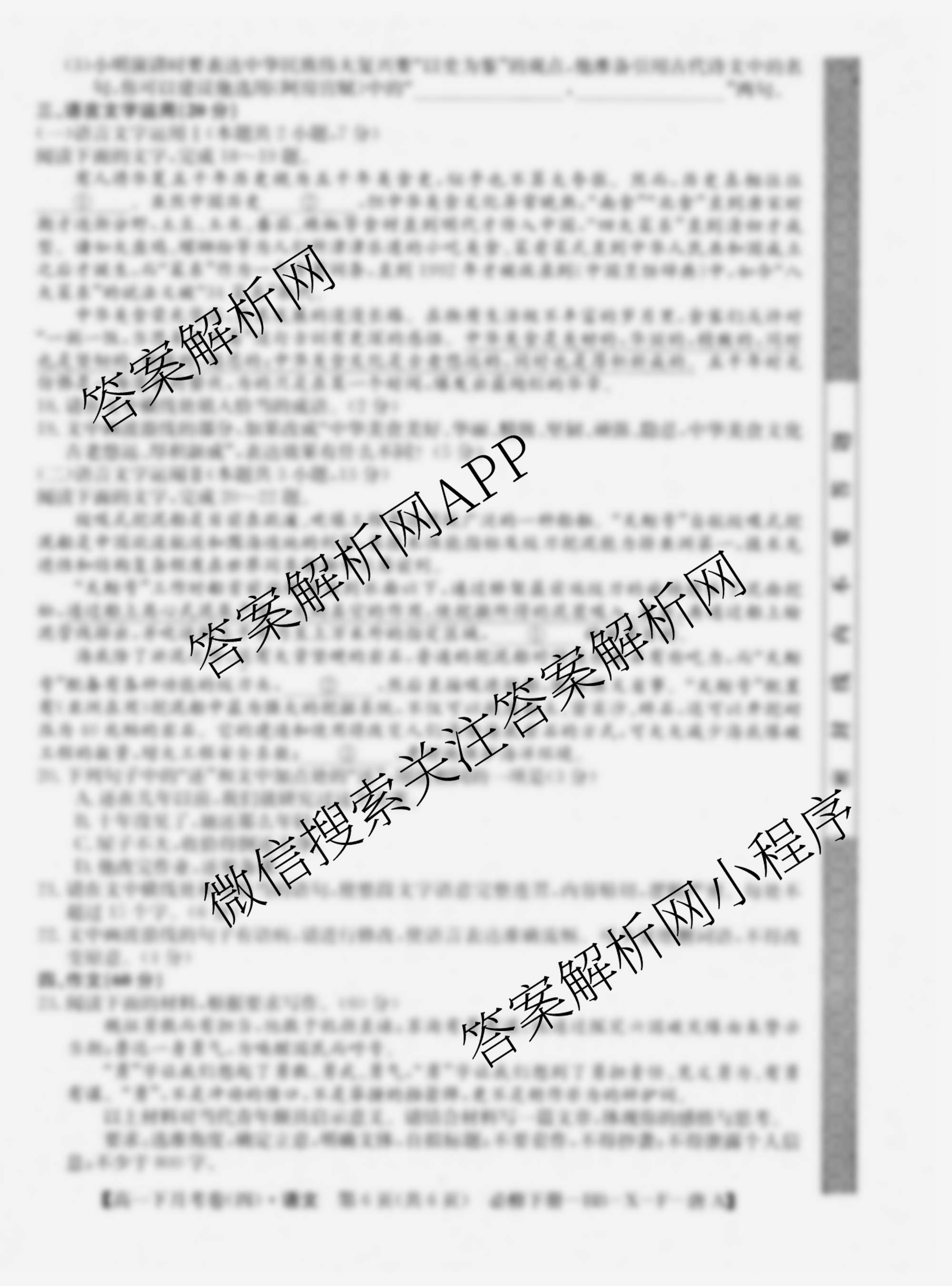 2023~2024全国名校高一下学期第四次月考试卷语文(必修下册-BB-X-F-唐A)试题,目前学英语报答案已经汇总了2023~2024全国名校高一下学期第四次月考试卷语文(必修下册-BB-X-F-唐A)试题的各科答案和试卷,获取更多全国名校月考试卷答案解析,请在关注本站。
