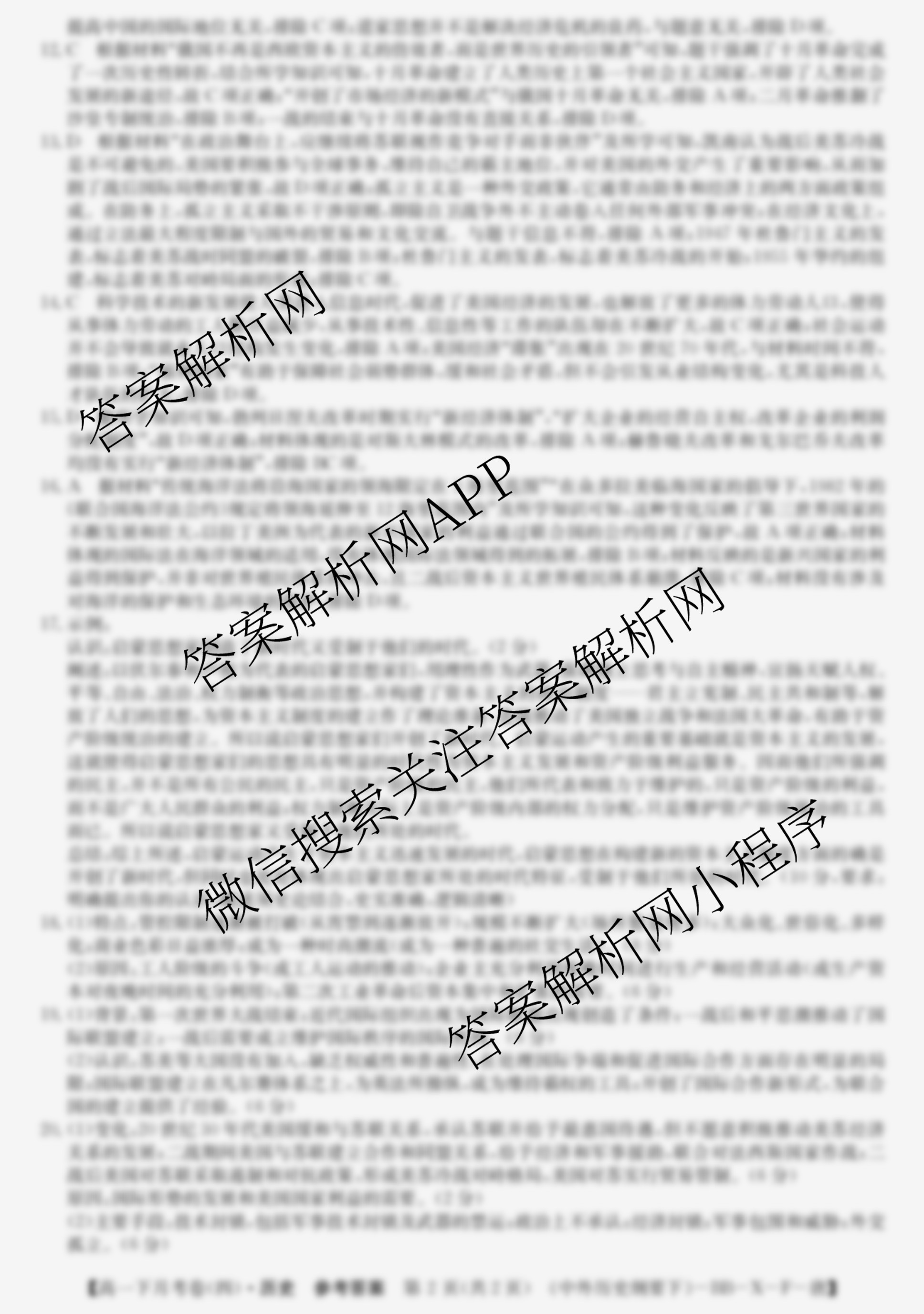 - 2023~2024高一全国名校下学期第四次月考试卷历史(中外历史纲要下-BB-X-F-唐)答案