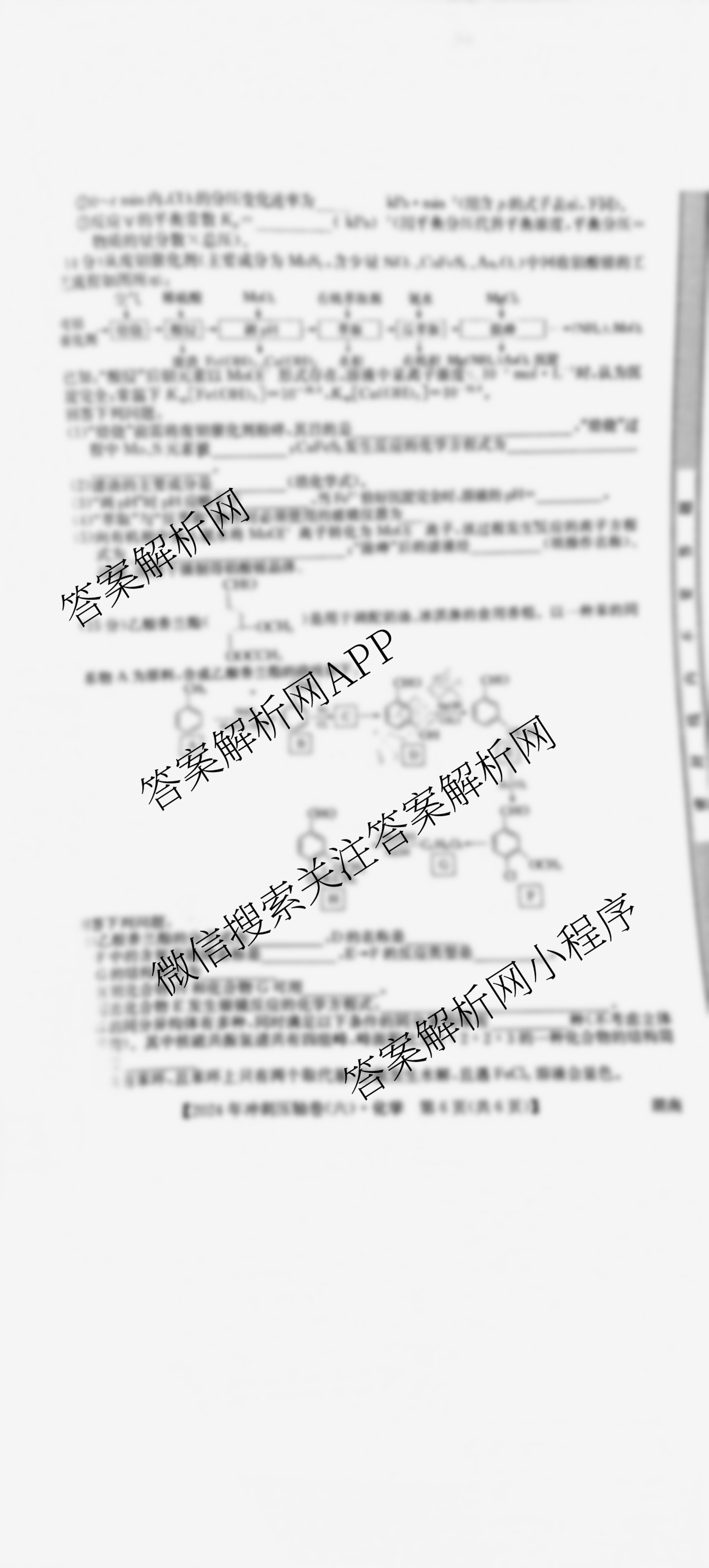 - [高三]2024年山东省普通高中学业水平等级考试冲刺压轴卷(六)6化学(山东)答案