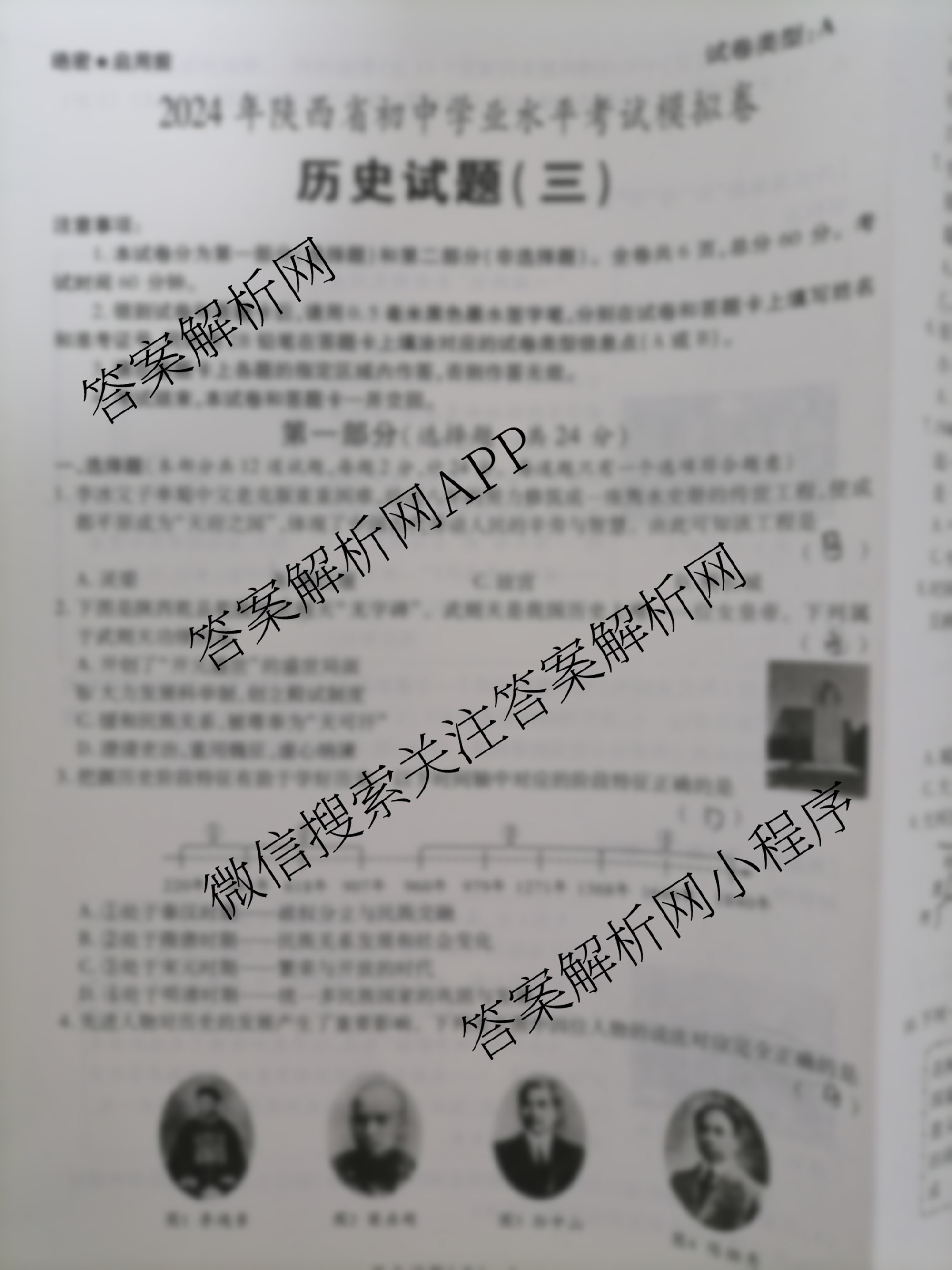 - [益卷]2024年陕西省初中学业水平考试模拟卷A(三)历史试题