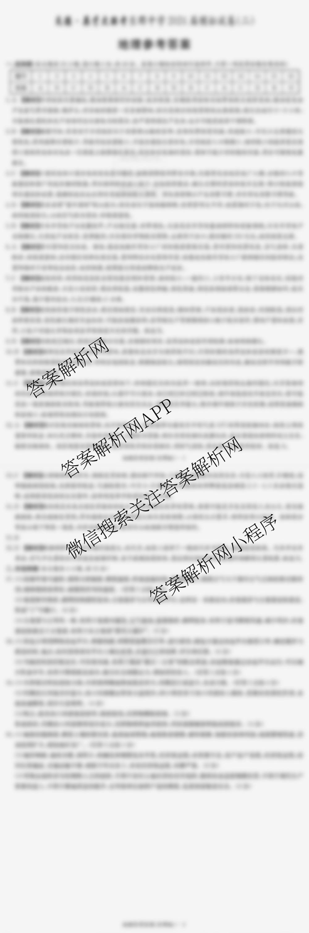- 高三(炎德英才大联考)长郡中学2024届模拟试卷(二)地理答案