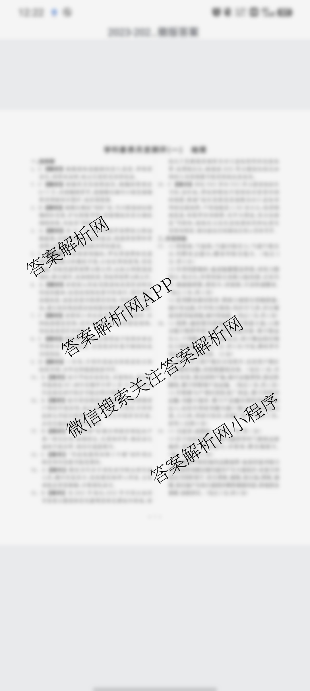 - [高三](真题密卷)·2024年学科素养月度测评(一)1历史(安徽版)答案