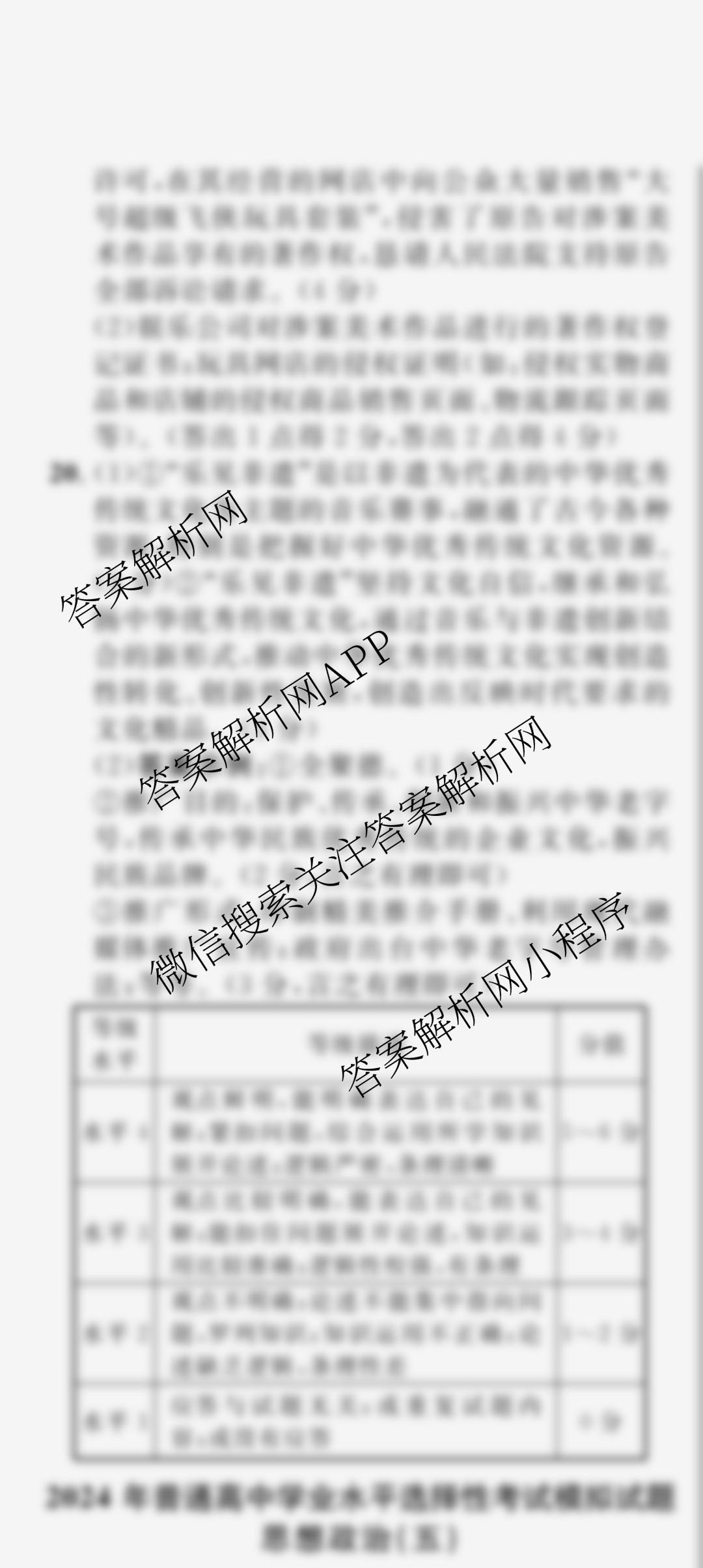 真题密卷备考信息导航演练 2024年普通高中学业水平选择性考试模拟试题(四)4政治(安徽版)答案