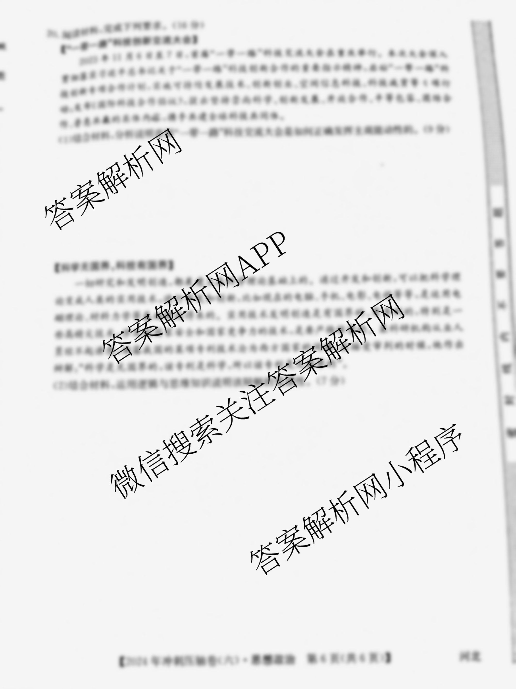 2024年河北省普通高中学业水平选择性考试冲刺压轴卷(六)6政治(河北)试题,目前学英语报答案已经汇总了2024年河北省普通高中学业水平选择性考试冲刺压轴卷(六)6政治(河北)试题的各科答案和试卷,获取更多全国高考冲刺压轴卷答案解析,请在关注本站。