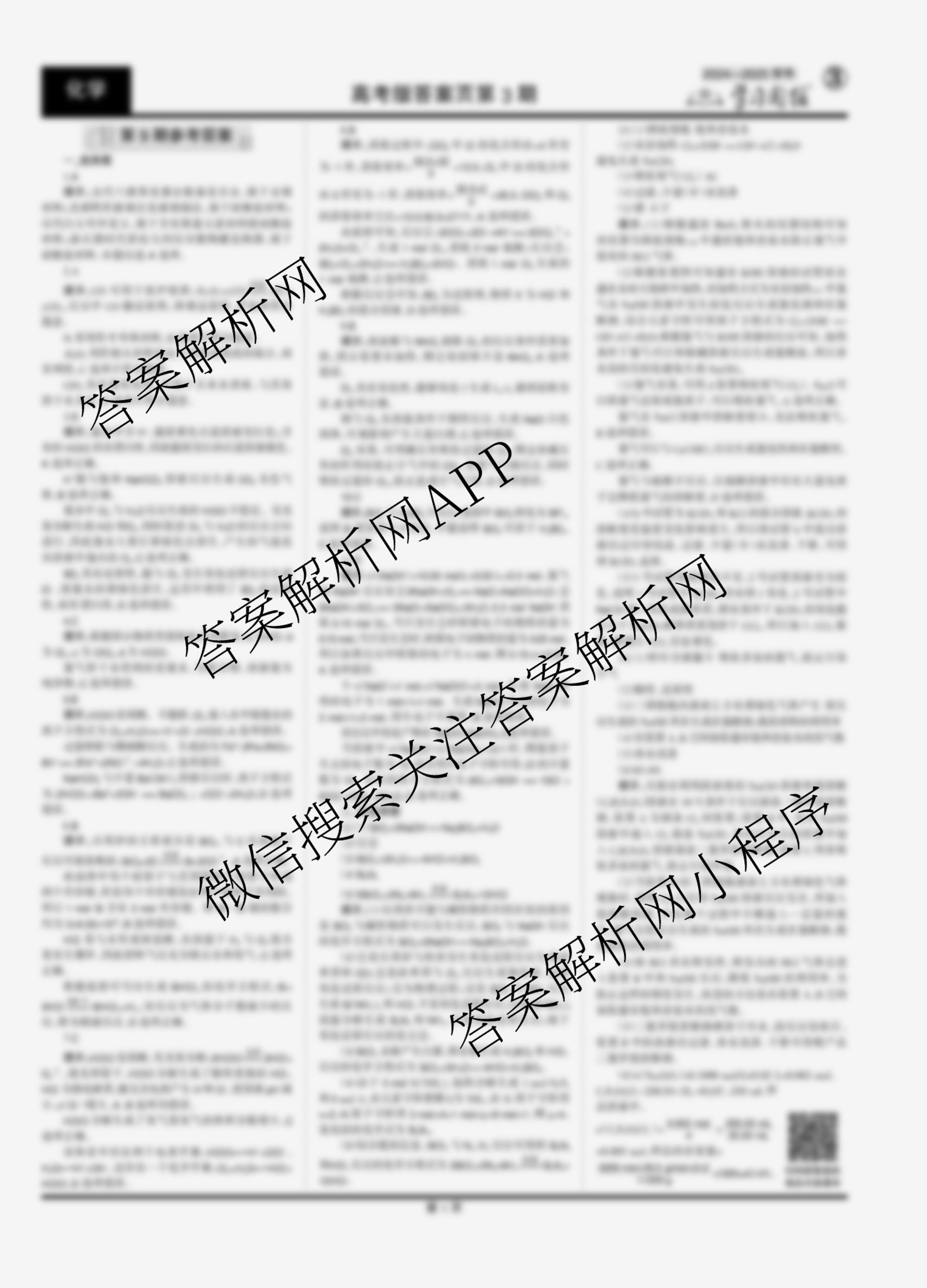 2024-2025 学习周报 化学(高考版)第9期答案