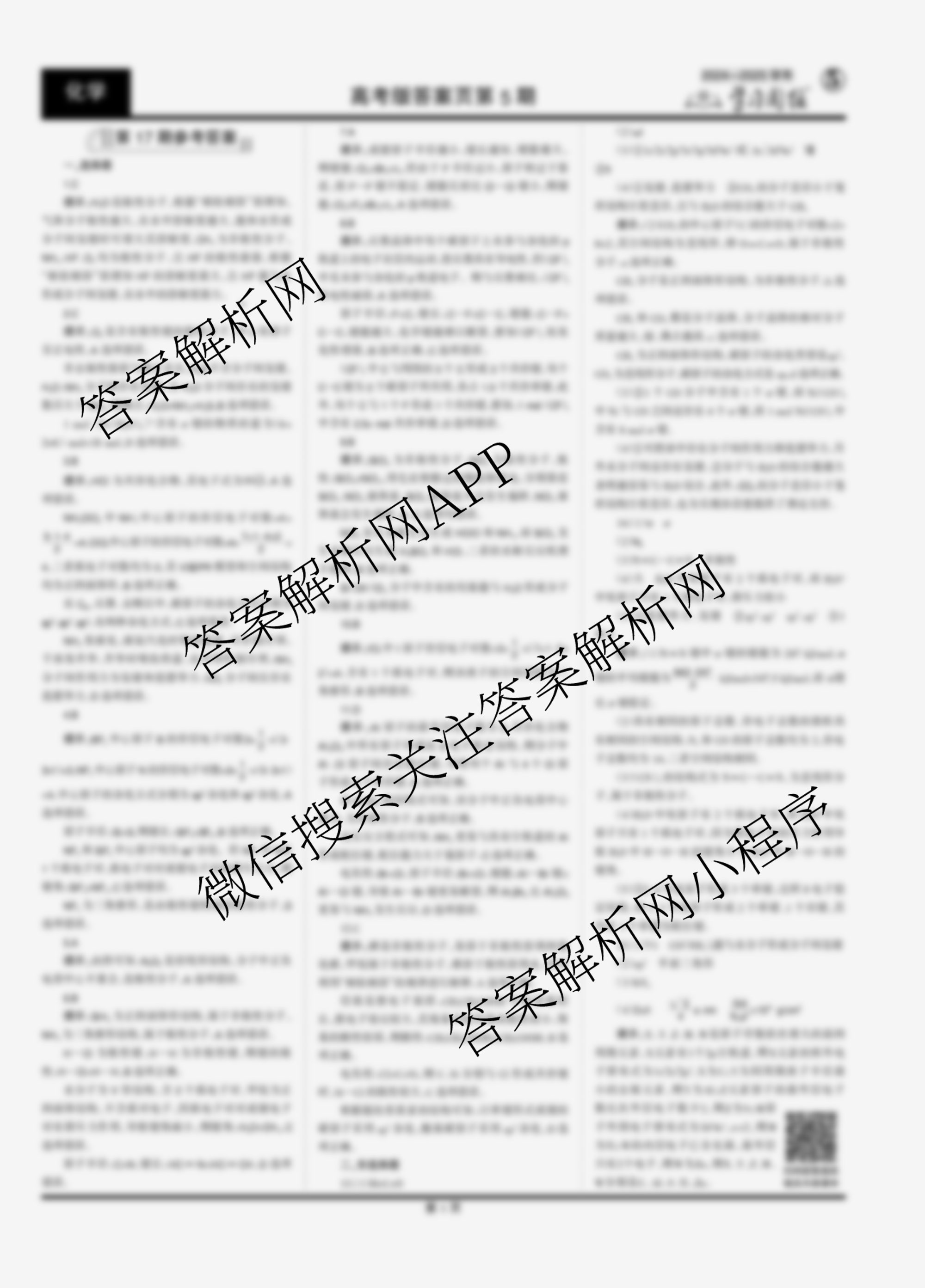 2024-2025 学习周报 化学(高考版)第17期答案