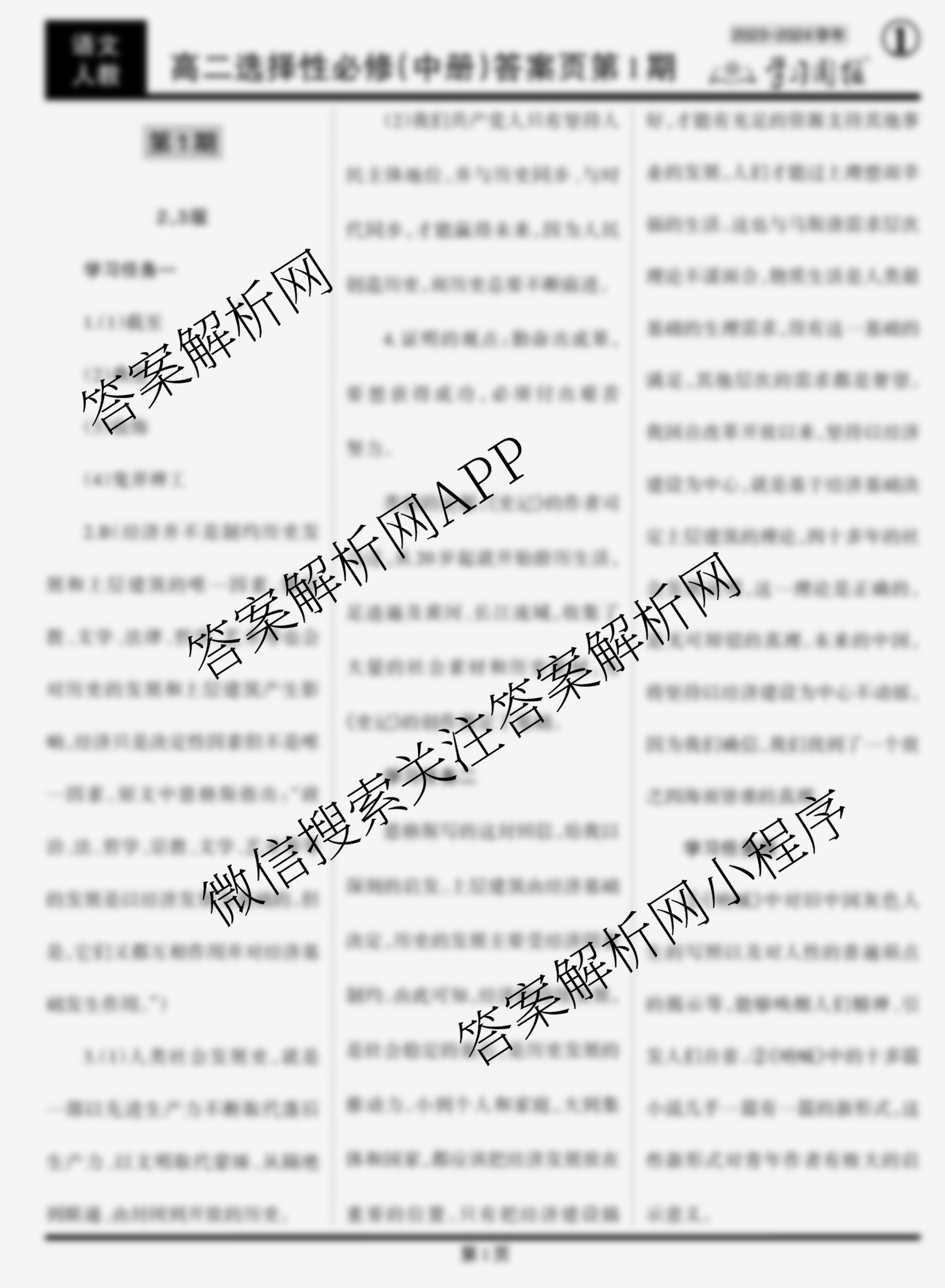 2023-2024 学习周报 语文人教高二选择性必修(中册)第1期答案