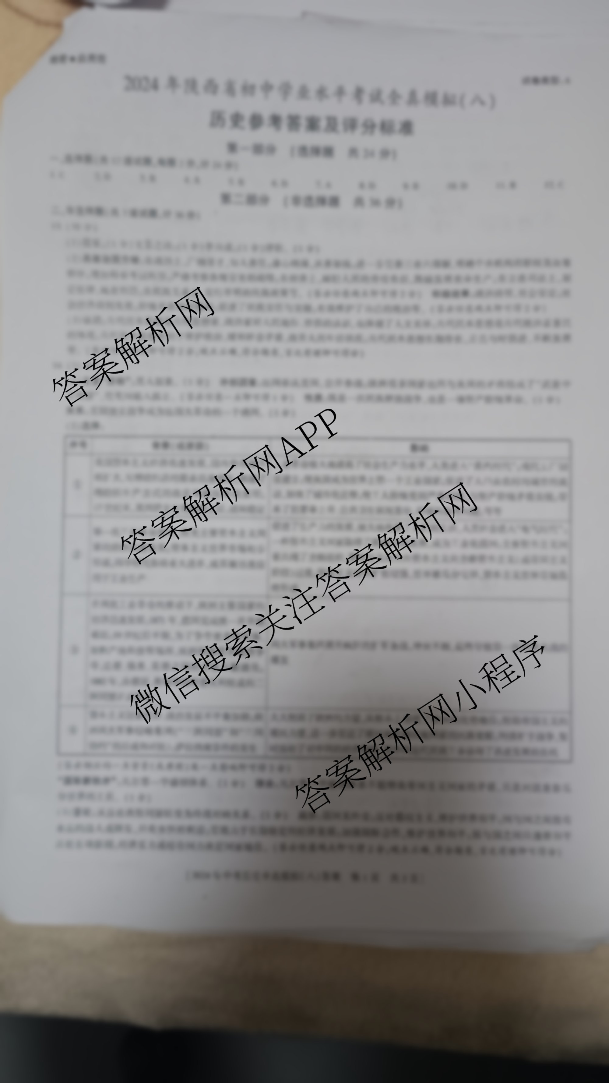 陕西益卷2024年陕西省初中学业水平考试全真模拟(八)历史答案