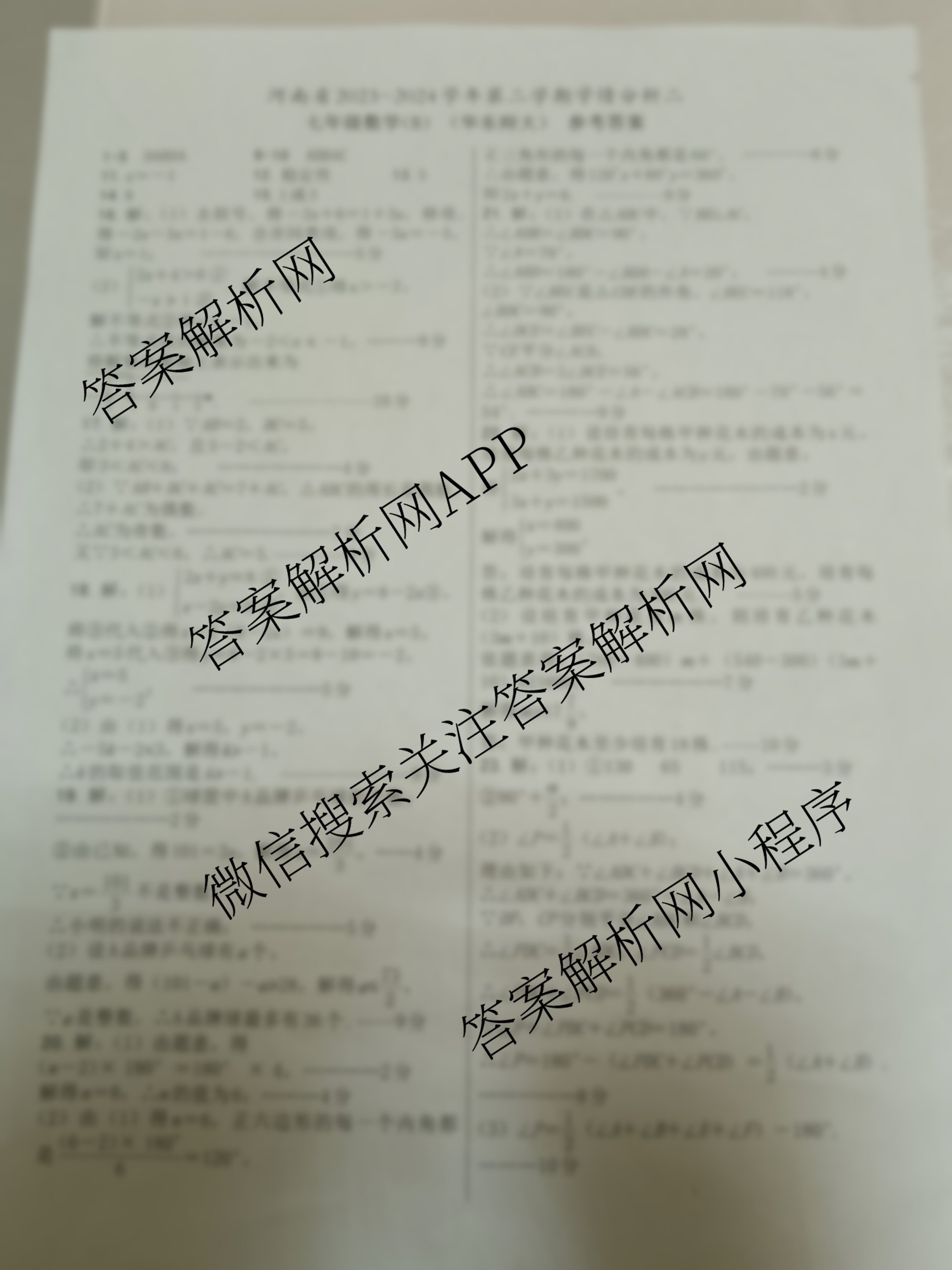 - [七年级]河南省2023-2024学年度第二学期第二次学情分析(二)数学(B 人教版)答案