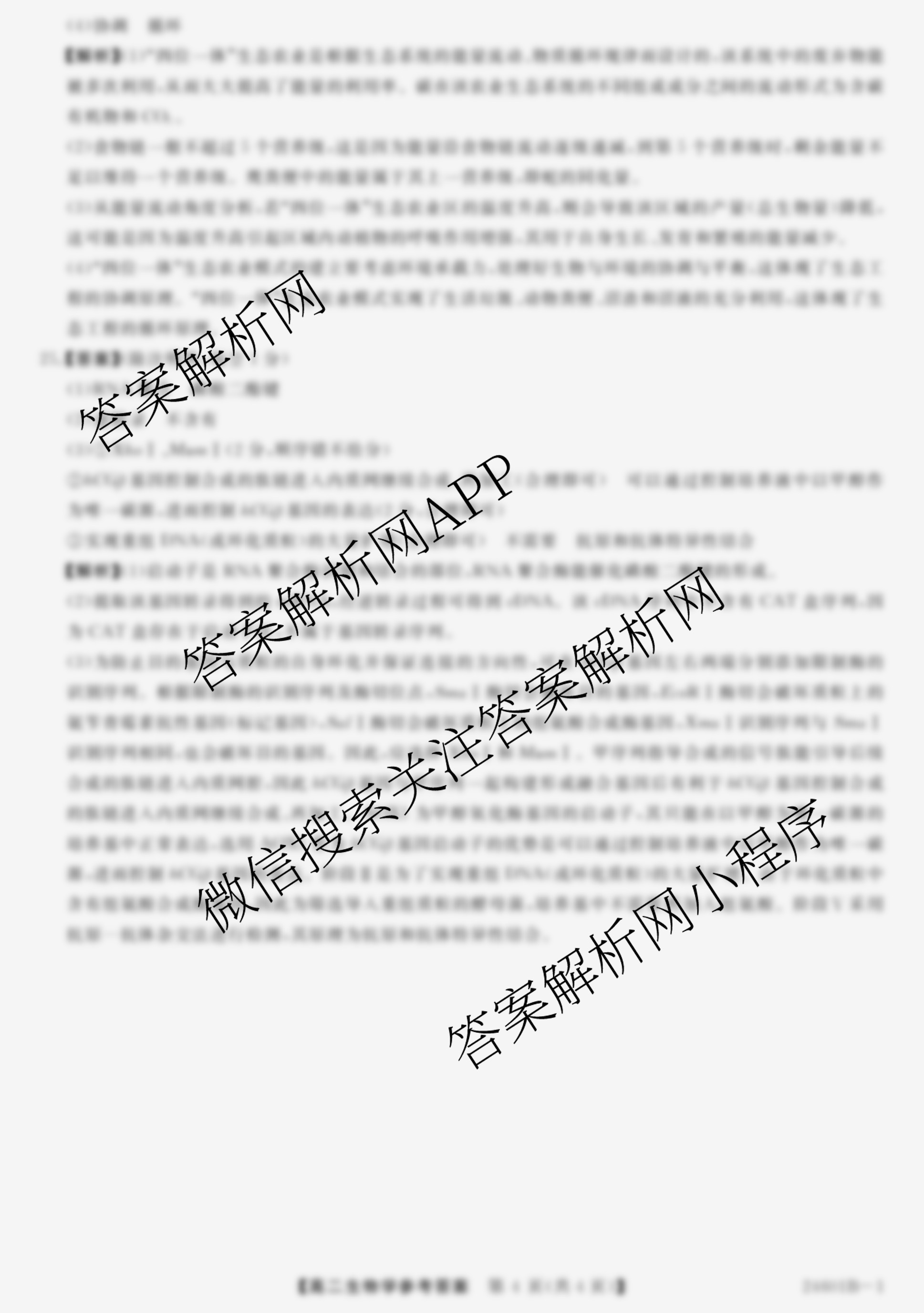 - 2023~2024高二[金科大联考]·学年度5月质量检测(24601B)生物(-1)答案