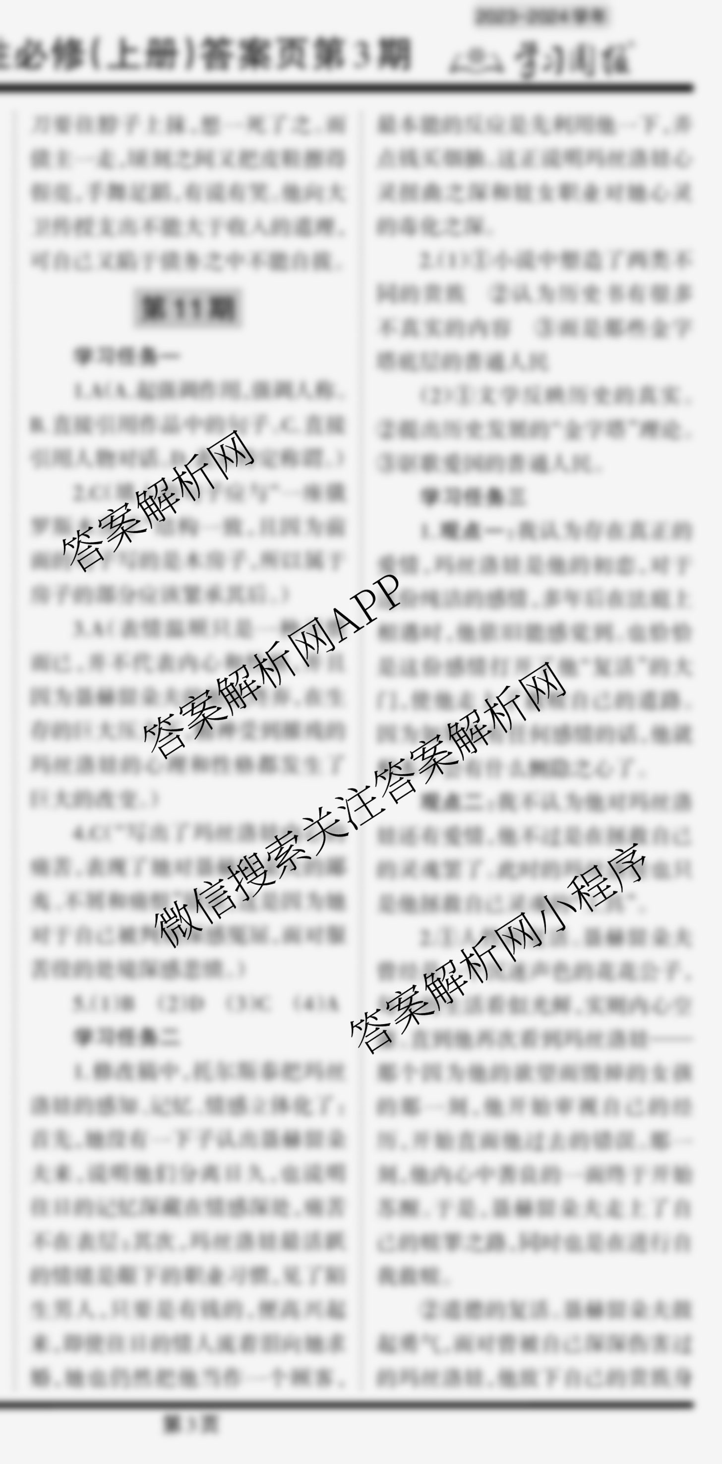 2023-2024 学习周报 语文人教高二选择性必修(上册)第11期答案