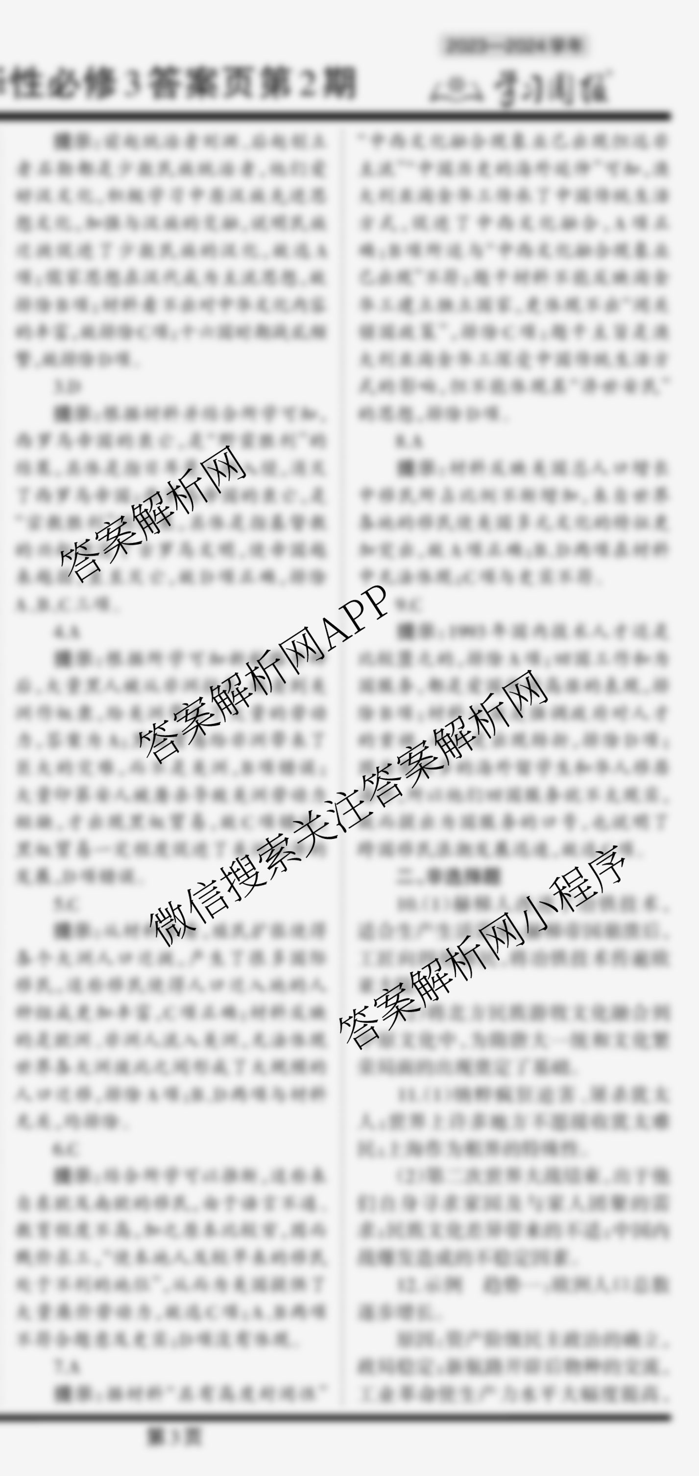 2023-2024 学习周报 历史 人教高二选择性必修3第7期答案