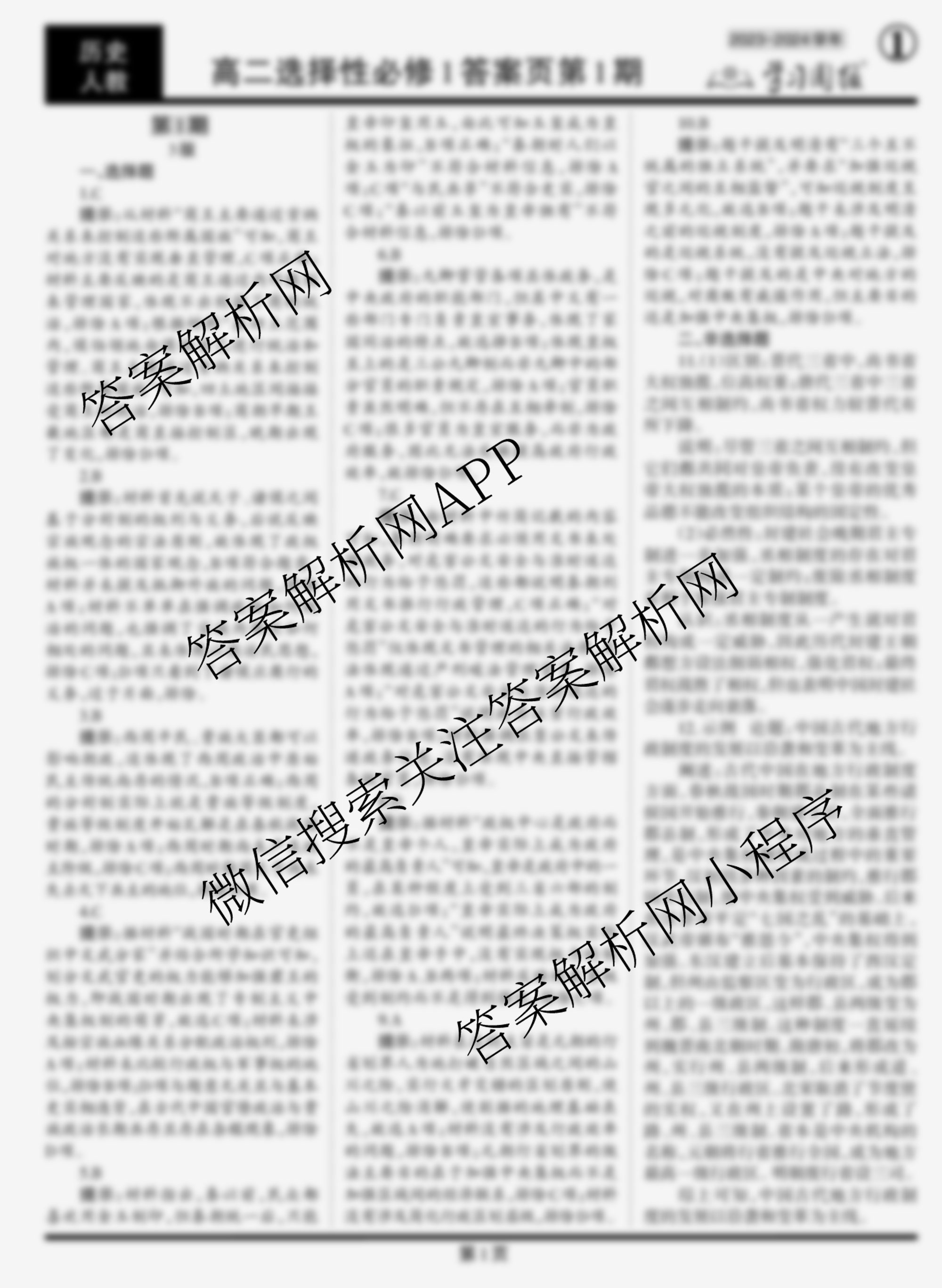 2023-2024 学习周报 历史 人教高二选择性必修1第1期答案