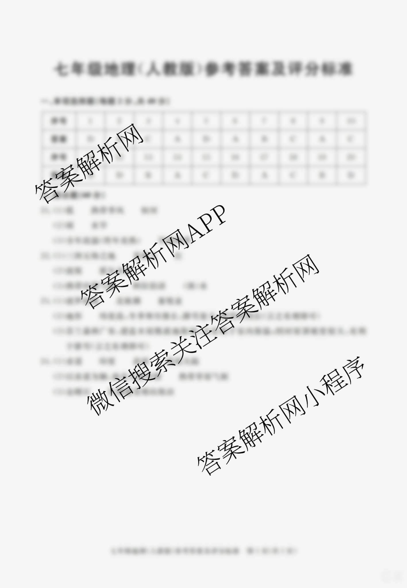 - 2023~2024七年级安徽省学年下学期教学质量调研三地理(人教版)答案