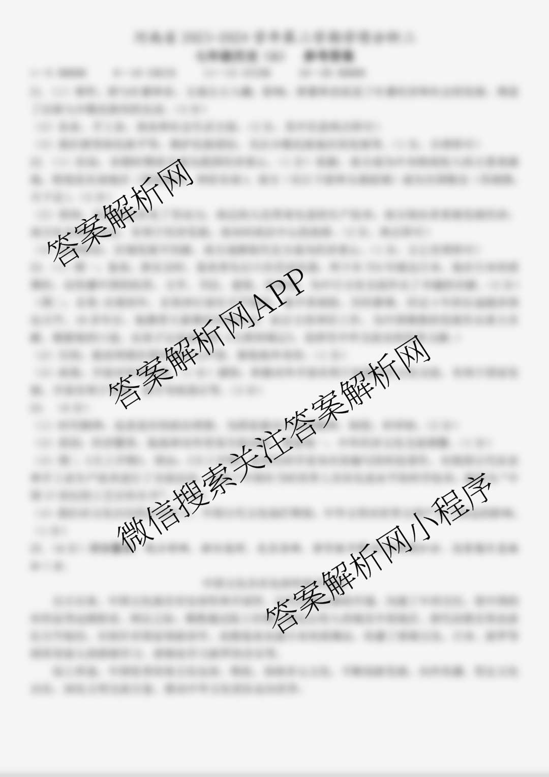 - (七年级)河南省2023~2024学年度第二学期第二次学情分析(二)历史(A 统编版)答案