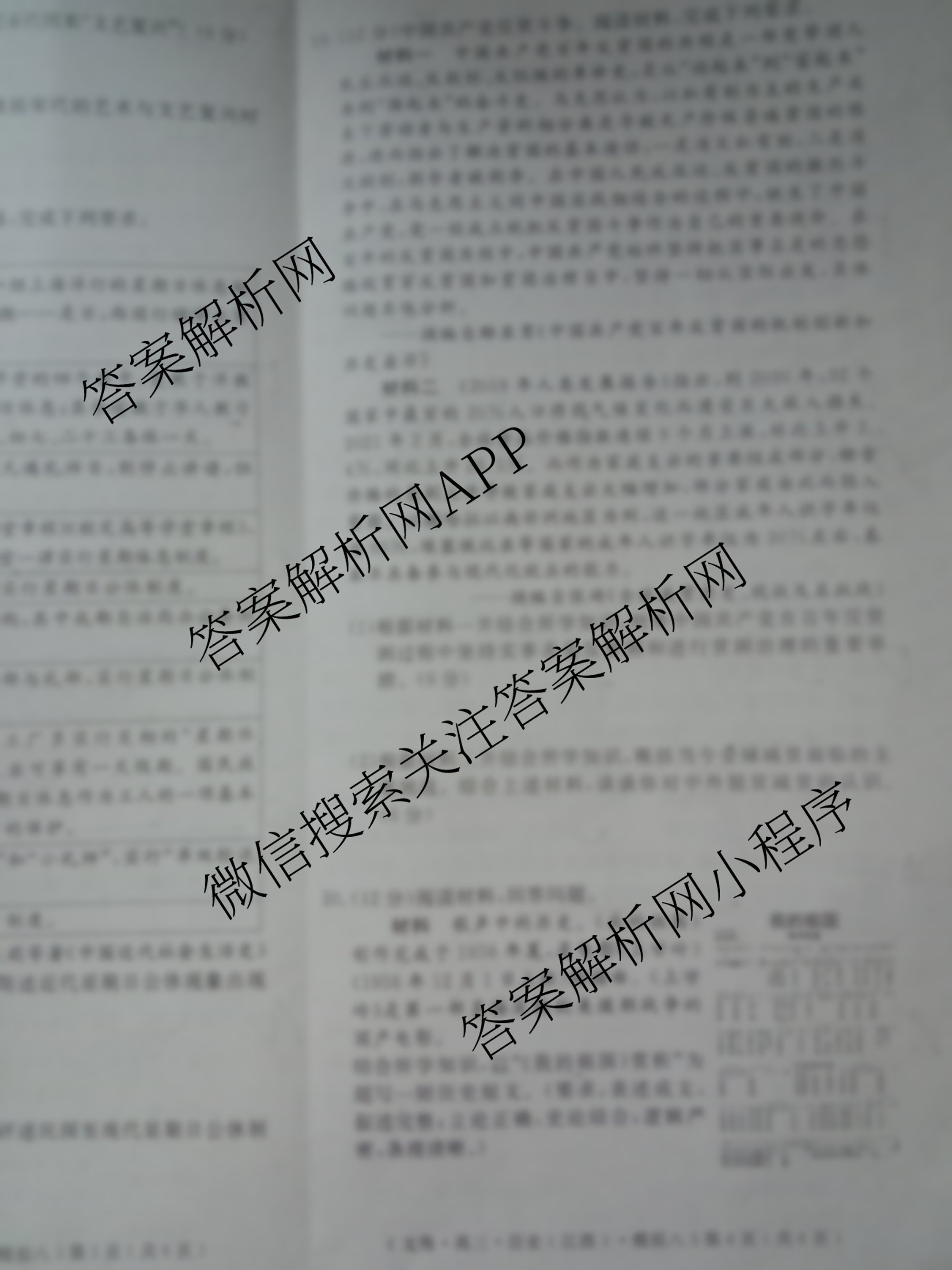 黄冈八模2024届高三历史模拟测试卷(江西)(八)8试题