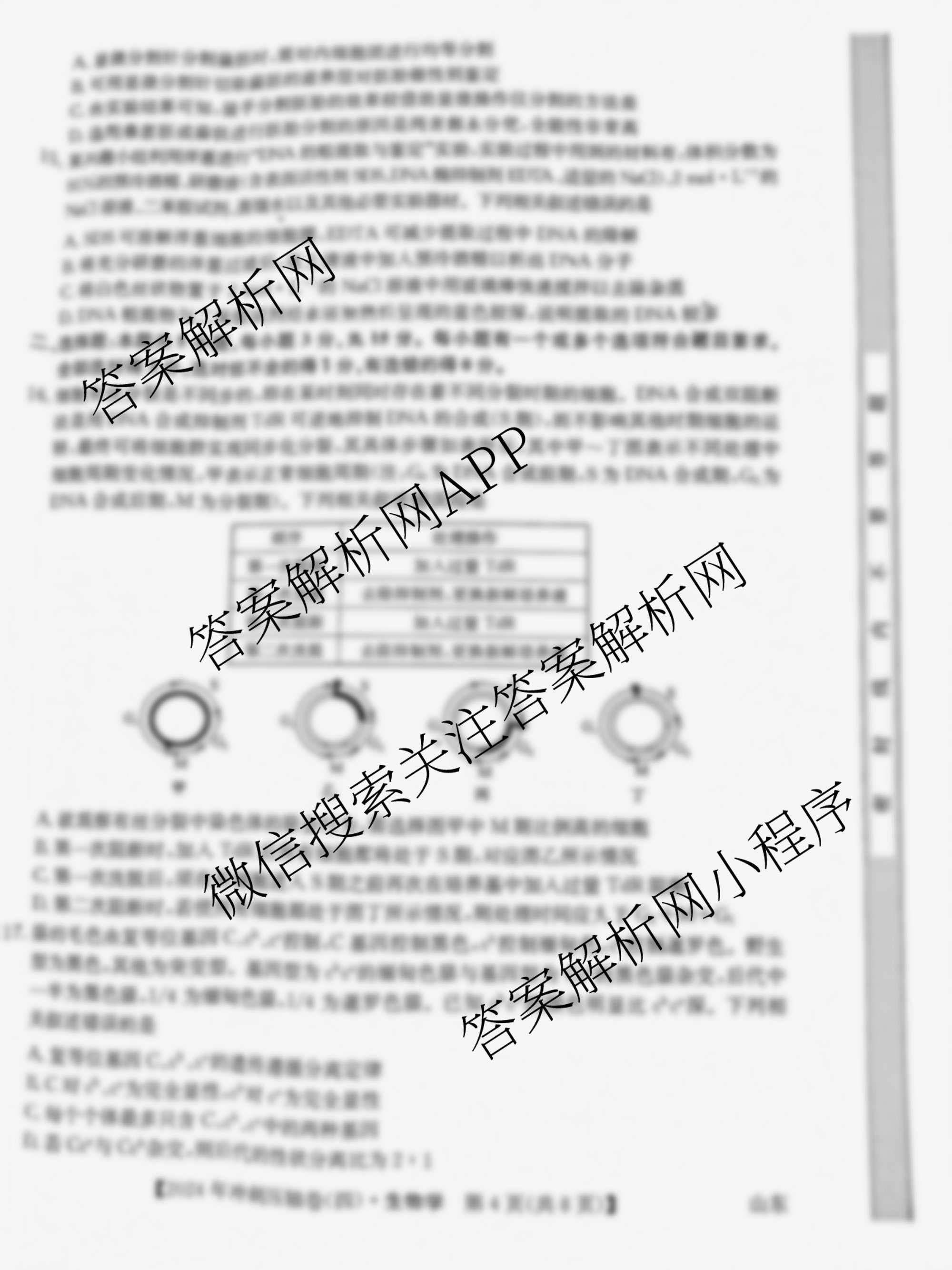 2024年山东省普通高中学业水平等级考试冲刺压轴卷(四)4生物(山东)试题
