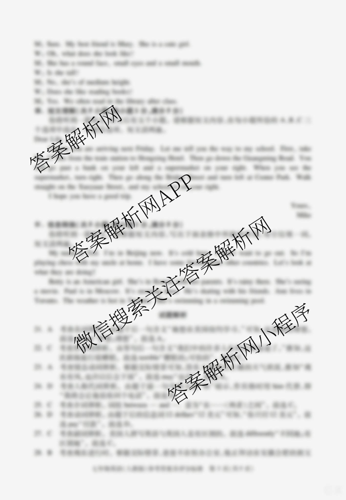 - 2023~2024安徽省学年[七年级]下学期教学质量调研三英语(人教版)答案