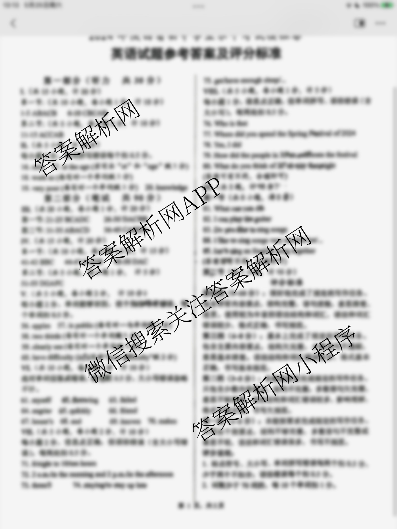 - [九年级]2024年陕西省初中学业水平考试模拟卷C语文答案