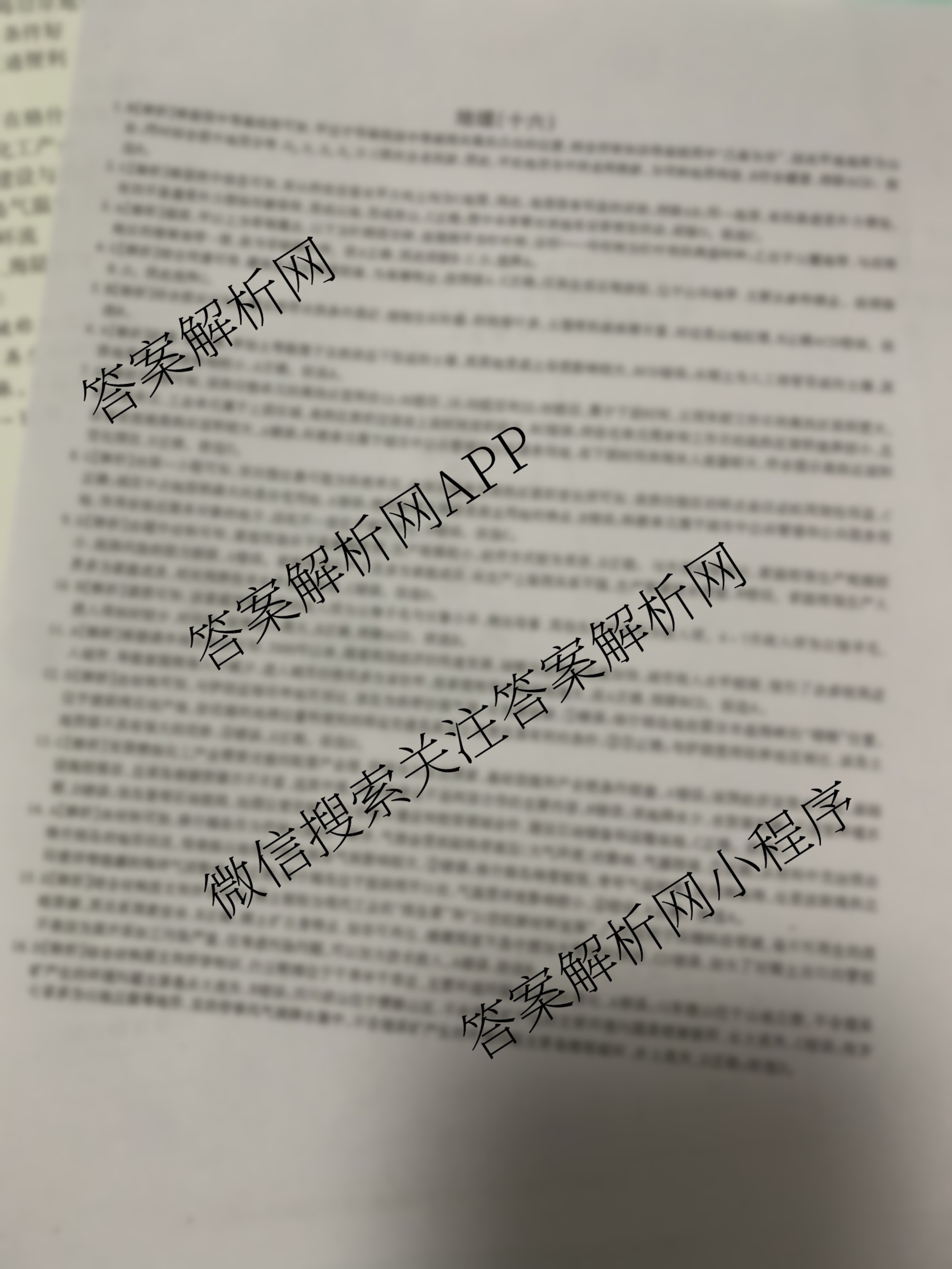 2024届高三JY金优试卷 地理 选择题专项提升卷(十六)16答案