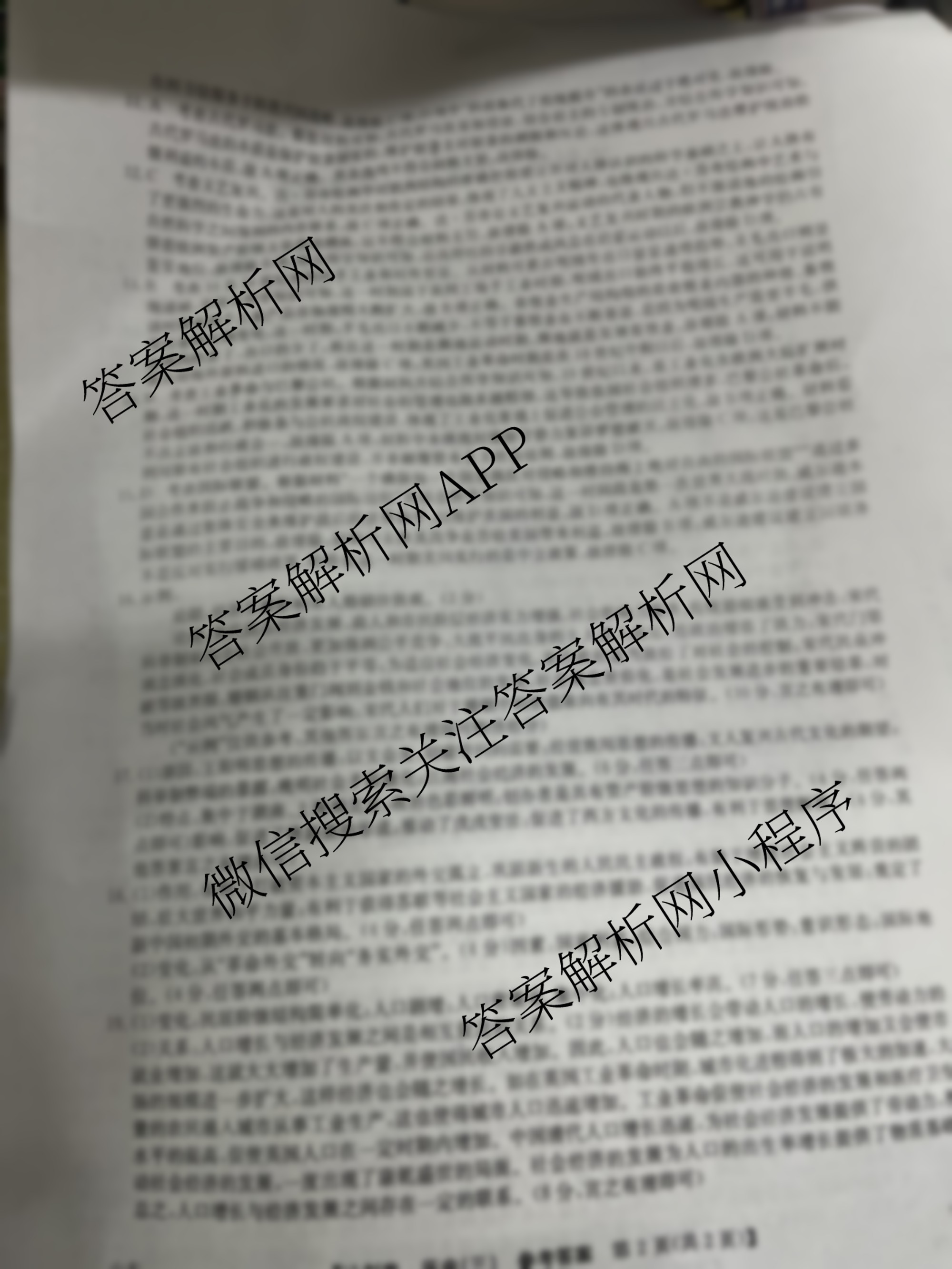 - 2024年安徽省普通高中学业水平选择性考试冲刺压轴卷(三)历史(安徽)答案