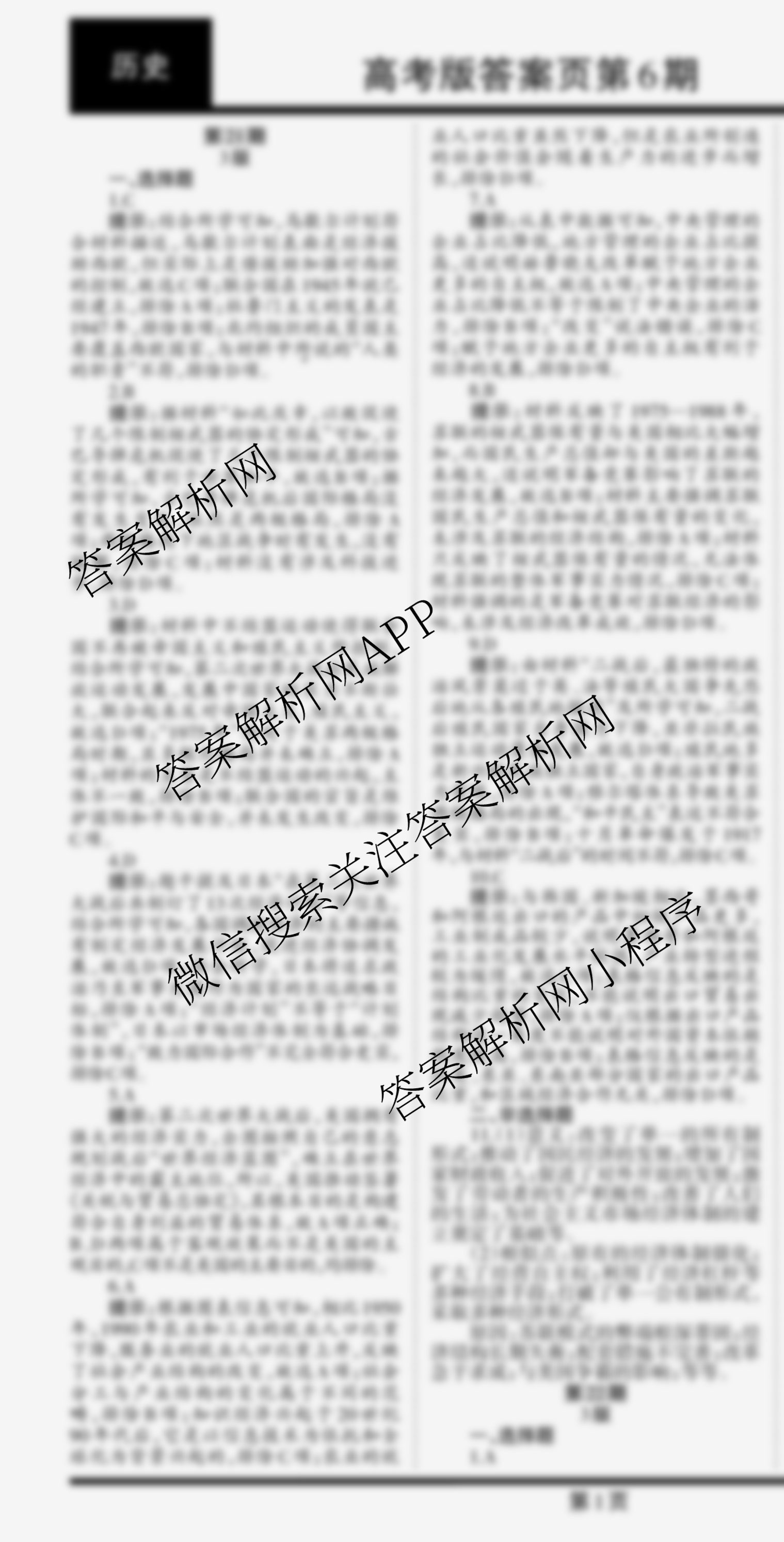 2023-2024 学习周报 历史(高考版)第21期答案