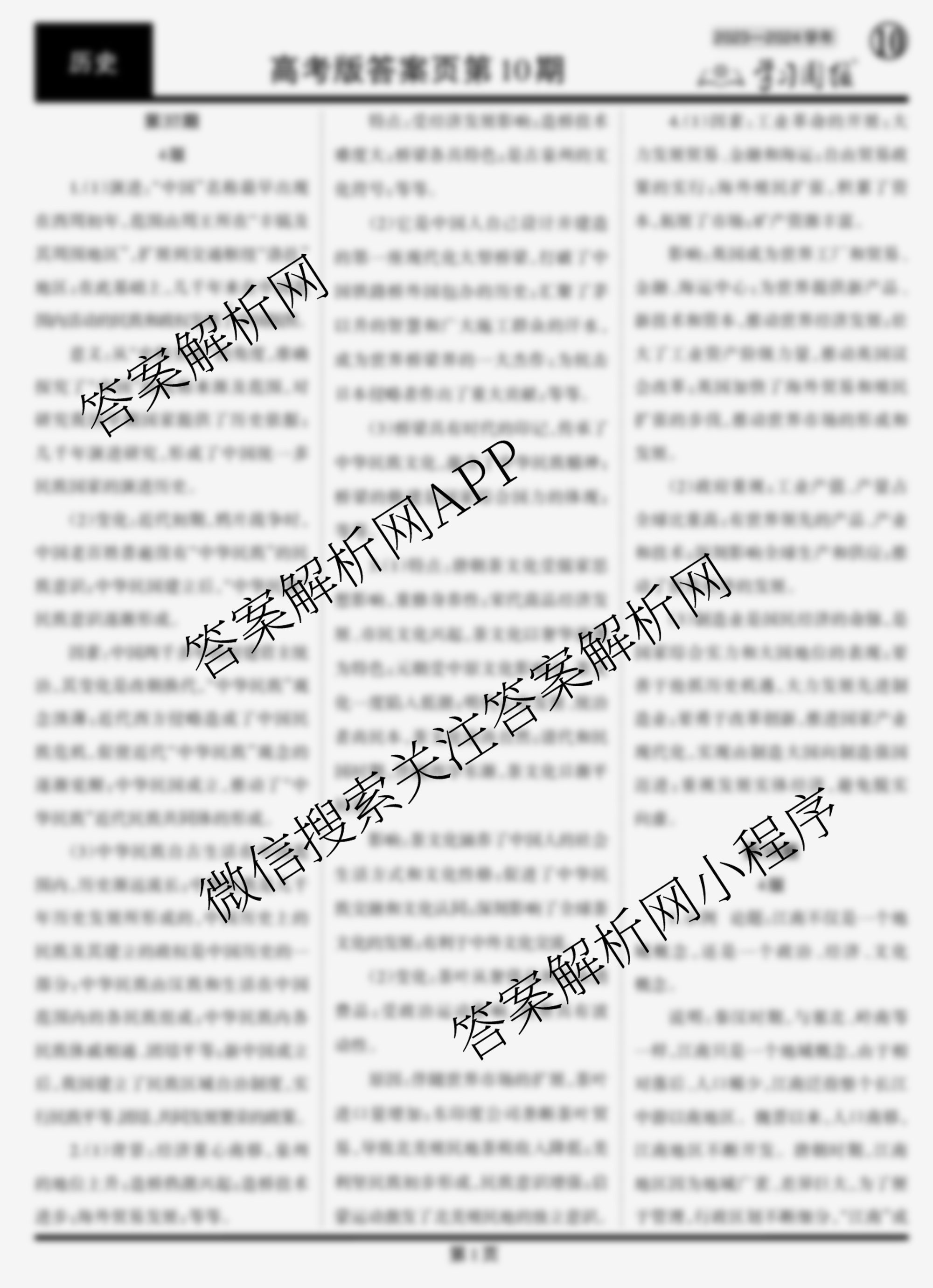 2023-2024 学习周报 历史(高考版)第37期答案