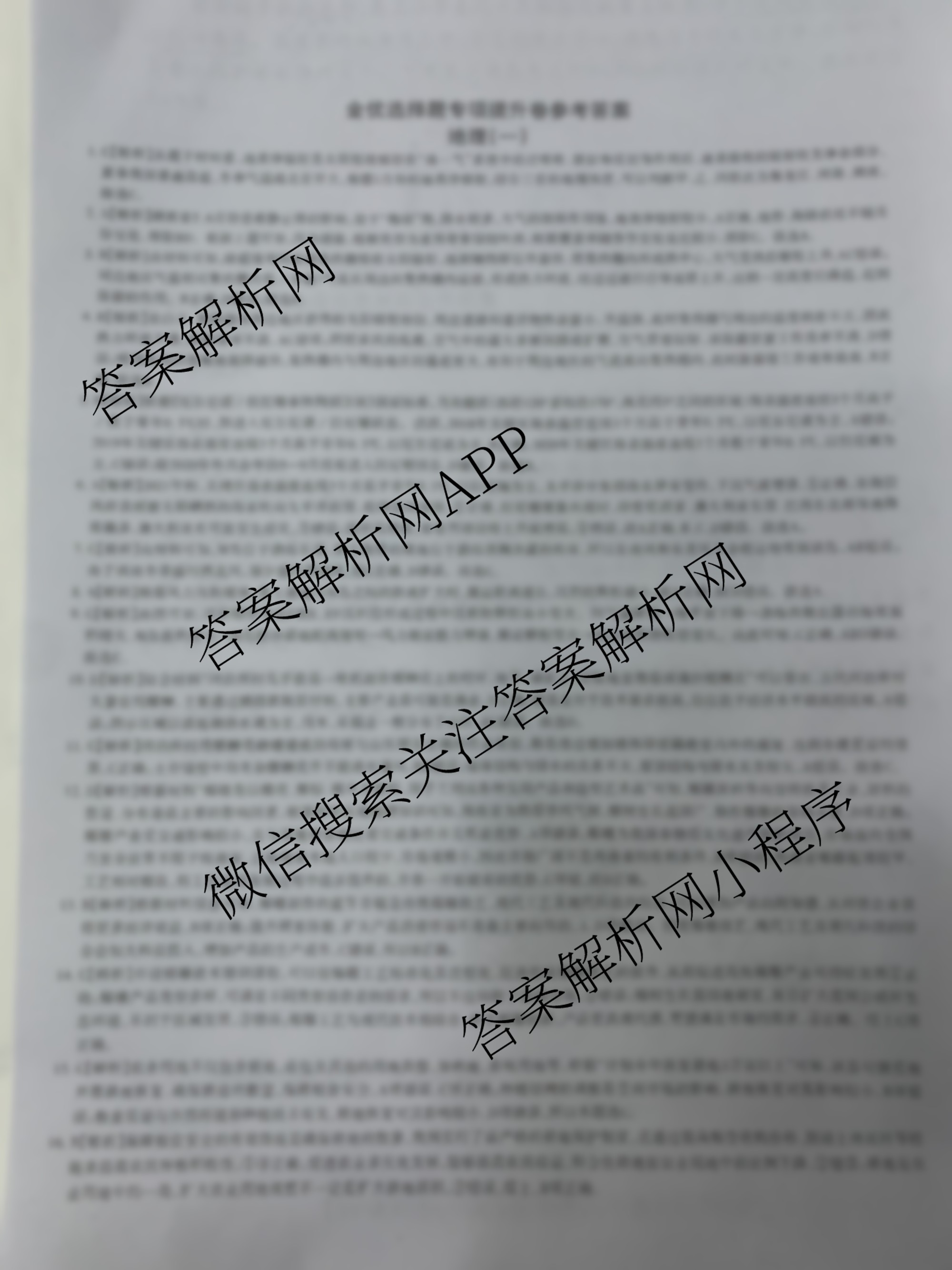 2024届高三JY金优试卷 地理 选择题专项提升卷(一)1答案