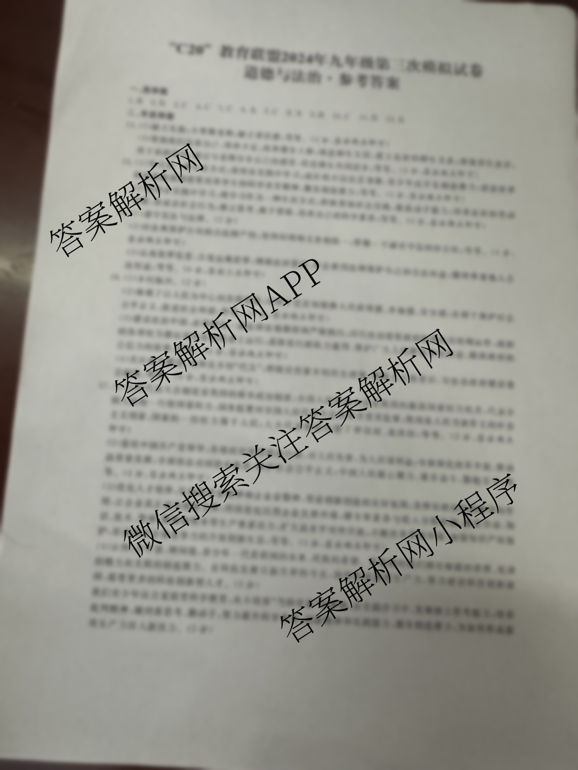 - (九年级)安徽省[C20教育联盟]2024年第三模拟试卷道德与法治答案
