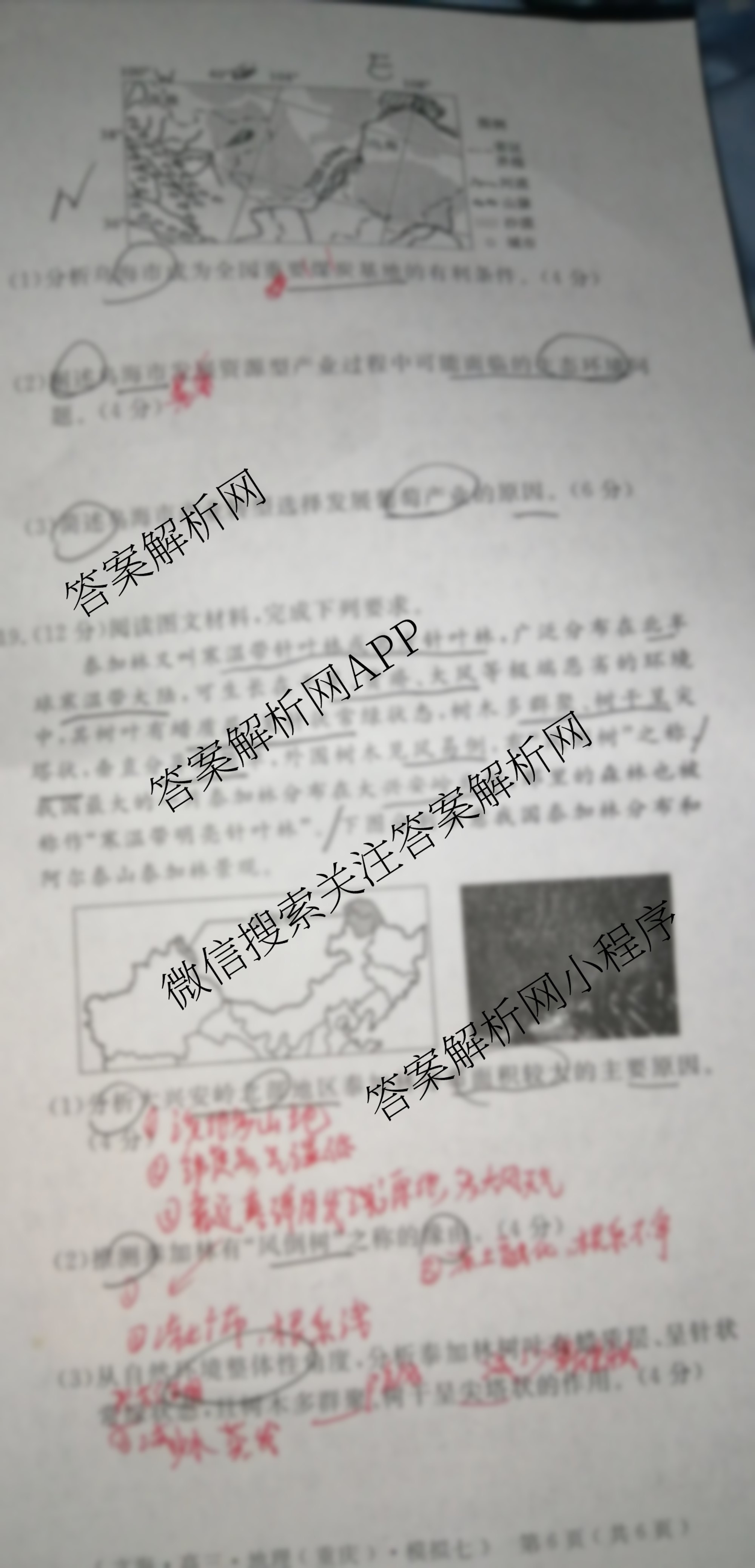 黄冈八模2024届高三地理模拟测试卷(重庆)(七)7答案