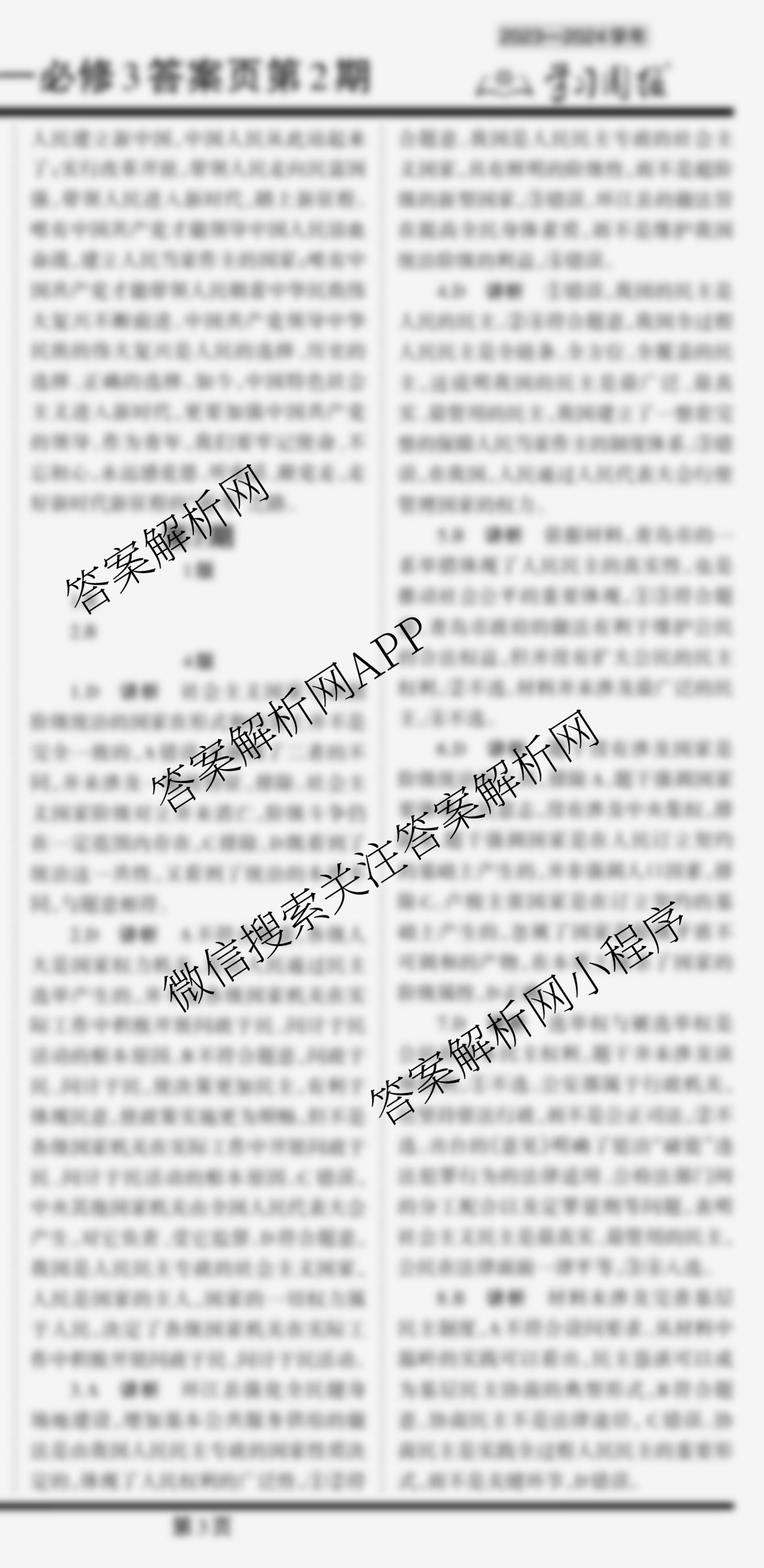 2023-2024 学习周报 政治人教高一必修3第7期答案