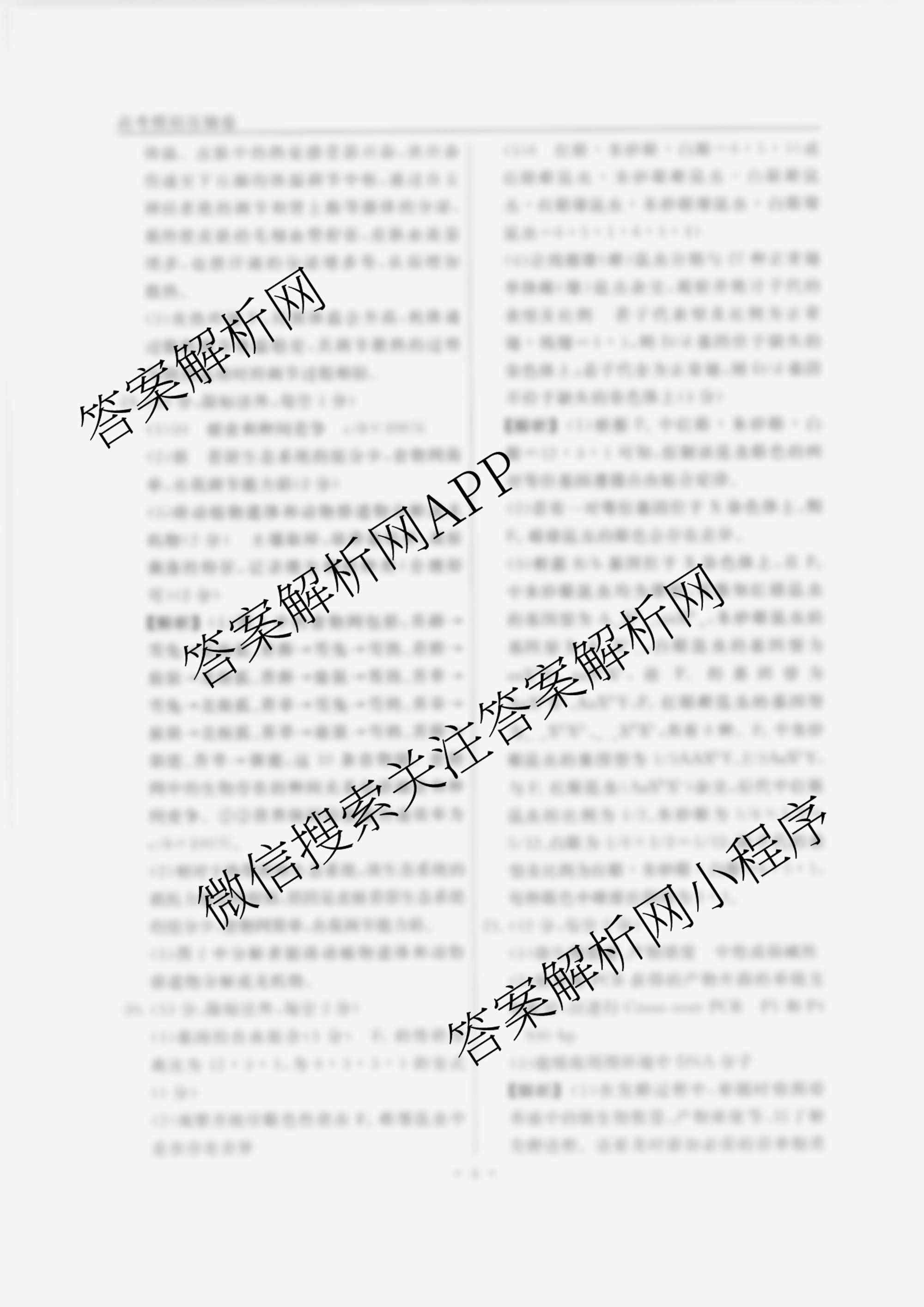 - [高三][衡水名师卷]高考模拟压轴卷 2024年普通高中学业水平选择性考试模拟试题(一)1生物(同心圆)答案