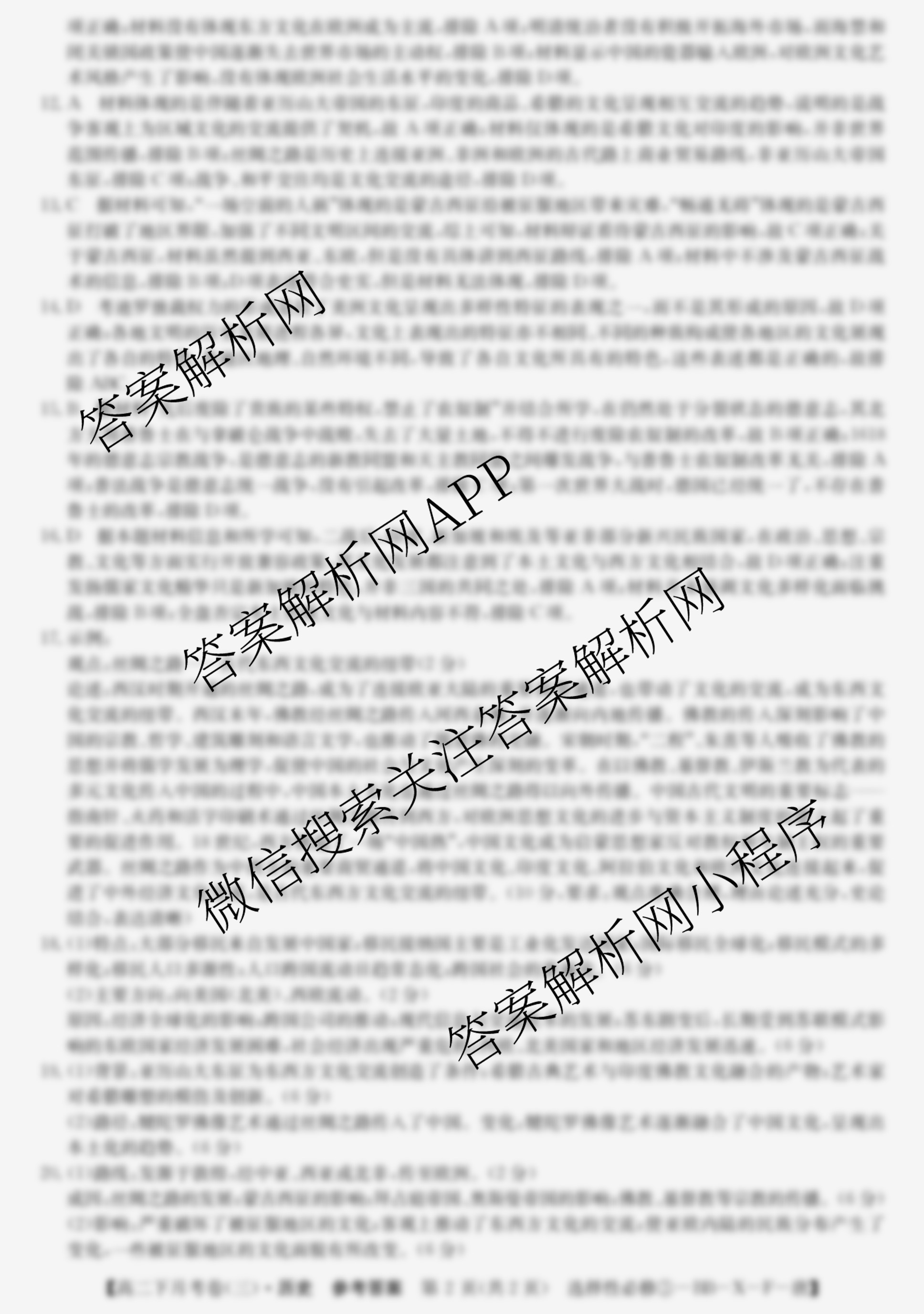 2023~2024全国名校高二下学期第三次月考试卷历史(选择性必修③-BB-X-F-唐)答案