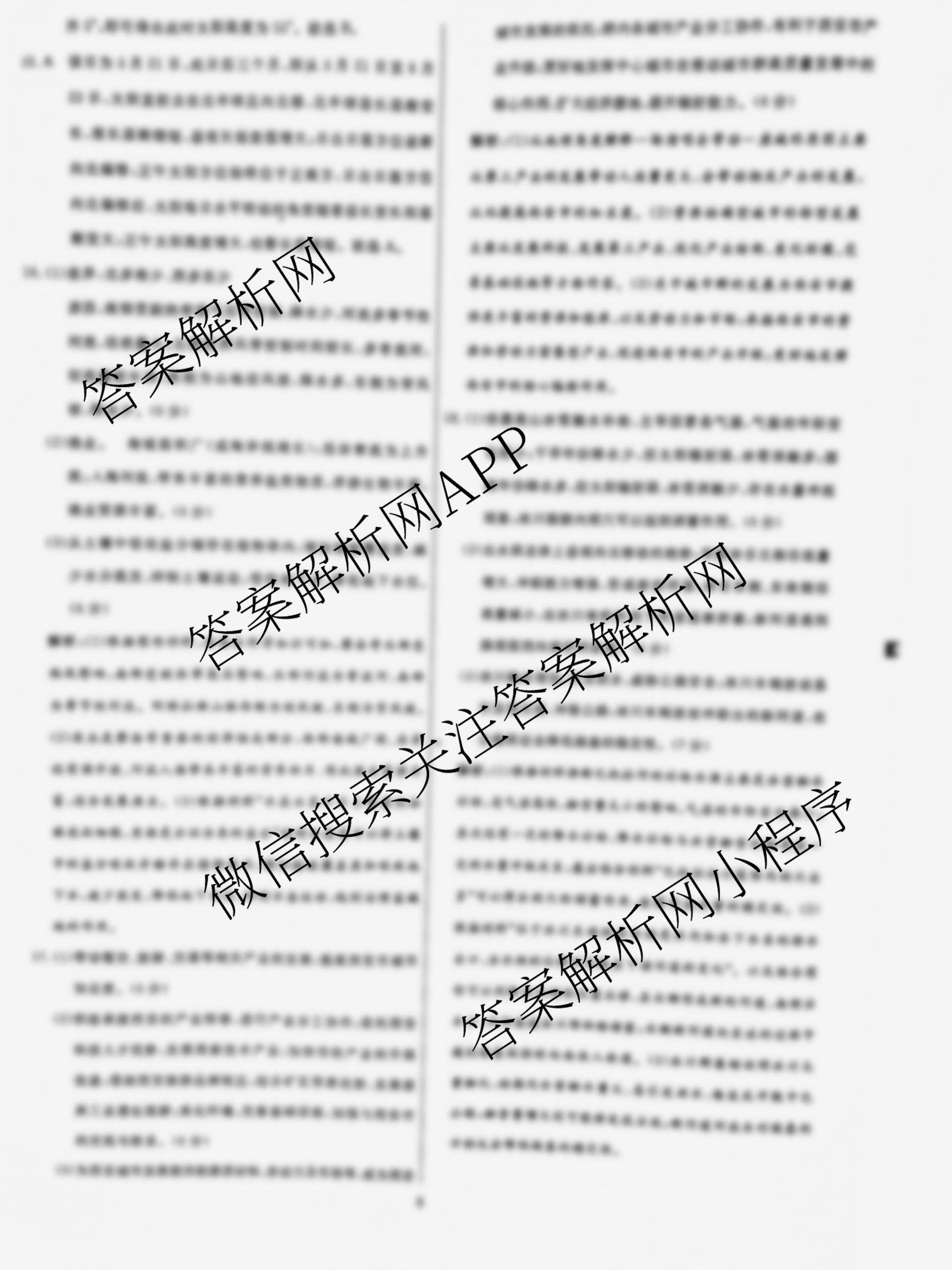 黄冈八模2024届高三地理模拟测试卷(湖北)(八)8答案