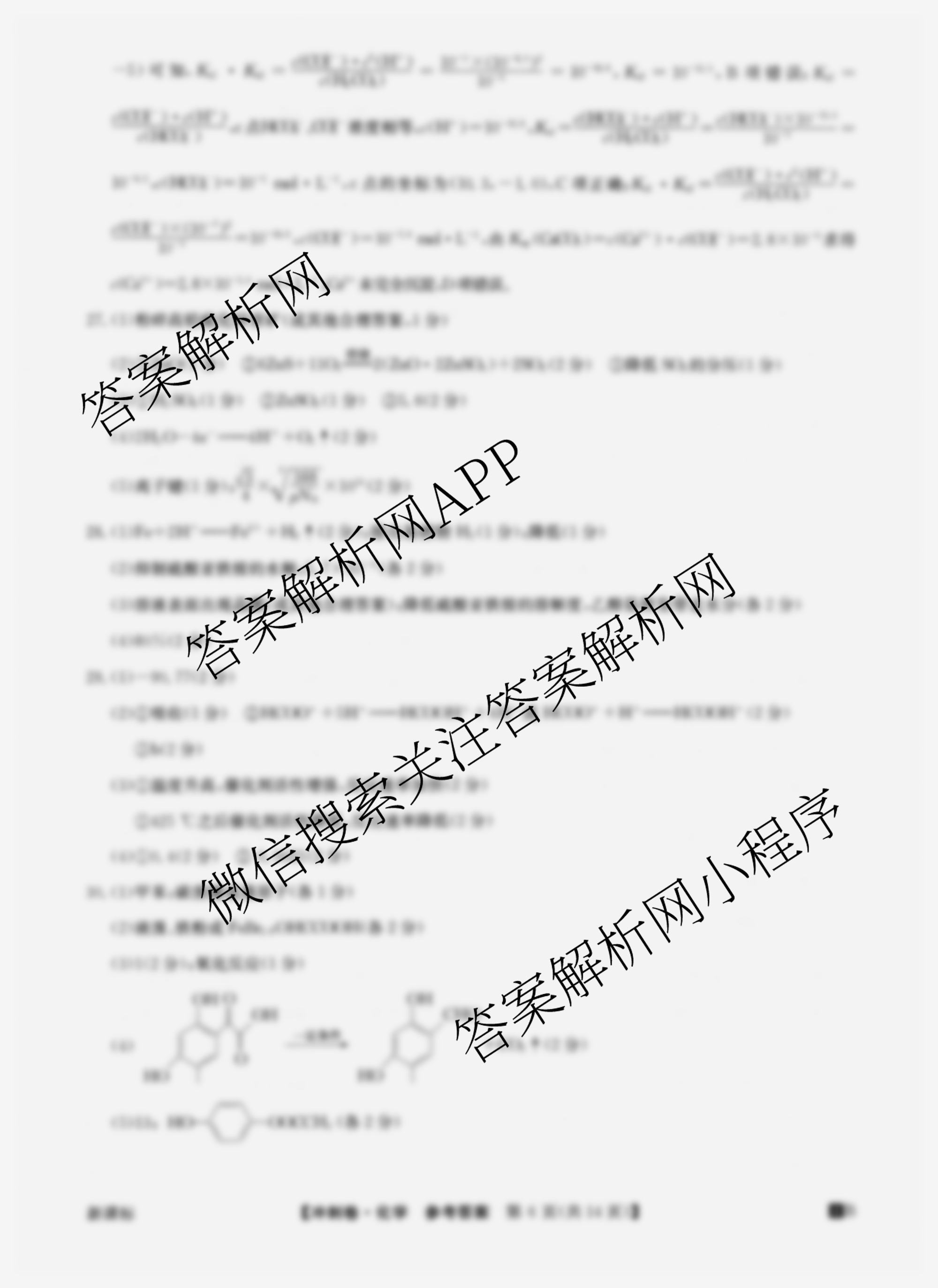 - [高三]2024年安徽省普通高中学业水平选择性考试冲刺压轴卷(三)化学(安徽)答案