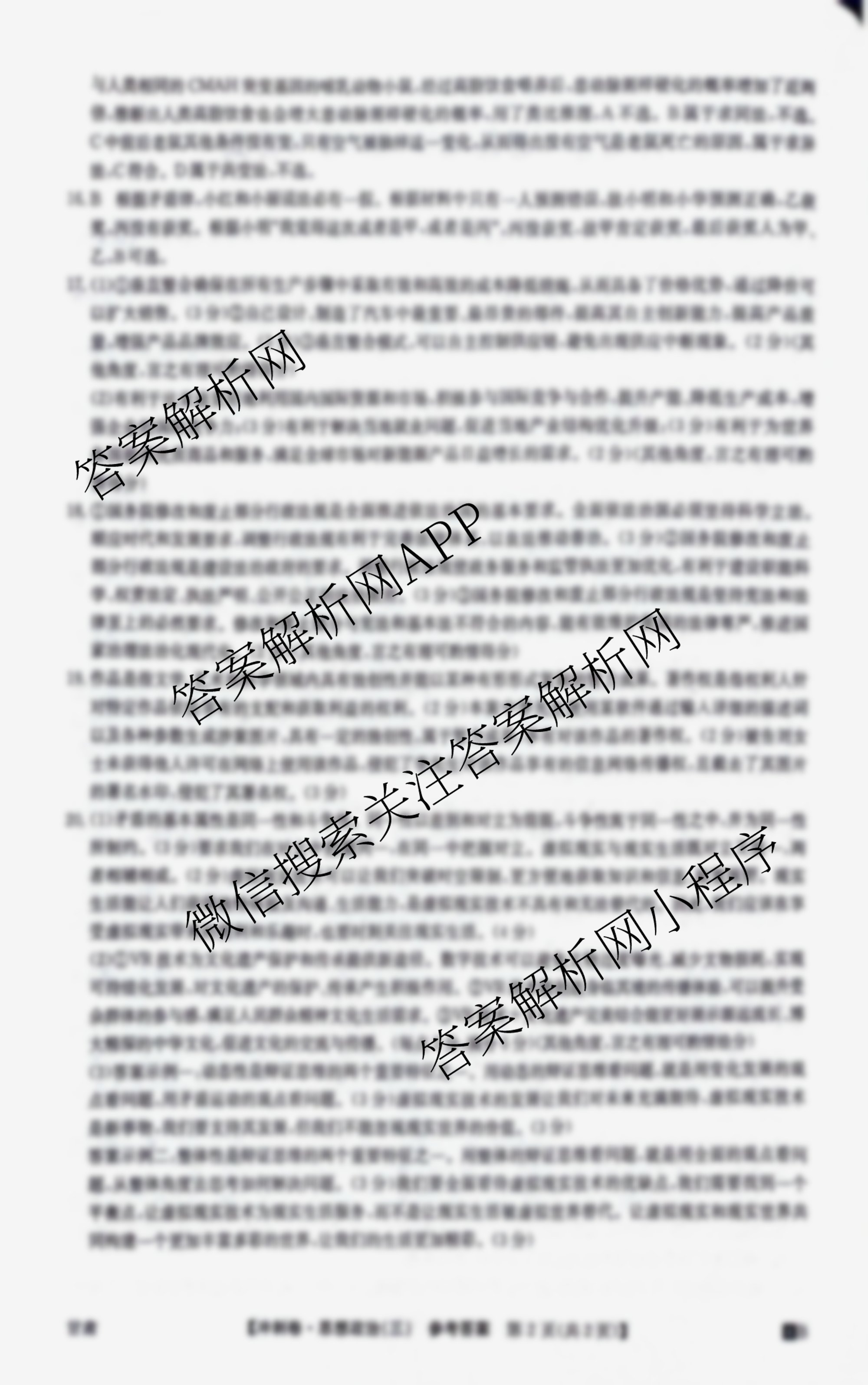 2024年甘肃省普通高中学业水平选择性考试冲刺压轴卷(三)3政治(甘肃)答案