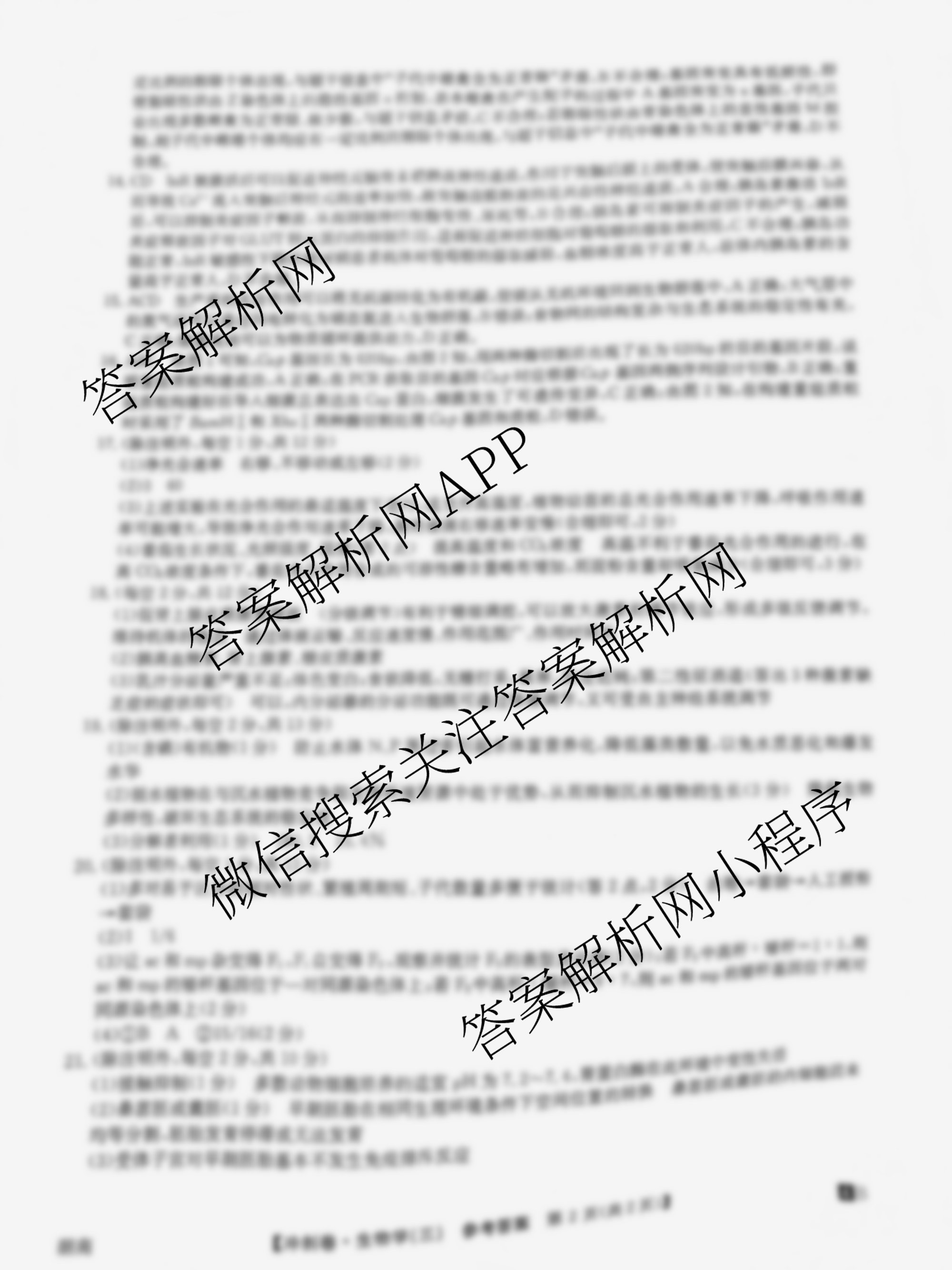 2024年湖南省普通高中学业水平选择性考试冲刺压轴卷(三)生物(湖南)答案,目前学英语报答案已经汇总了2024年湖南省普通高中学业水平选择性考试冲刺压轴卷(三)生物(湖南)答案的各科答案和试卷,获取更多全国高考冲刺压轴卷答案解析,请在关注本站。