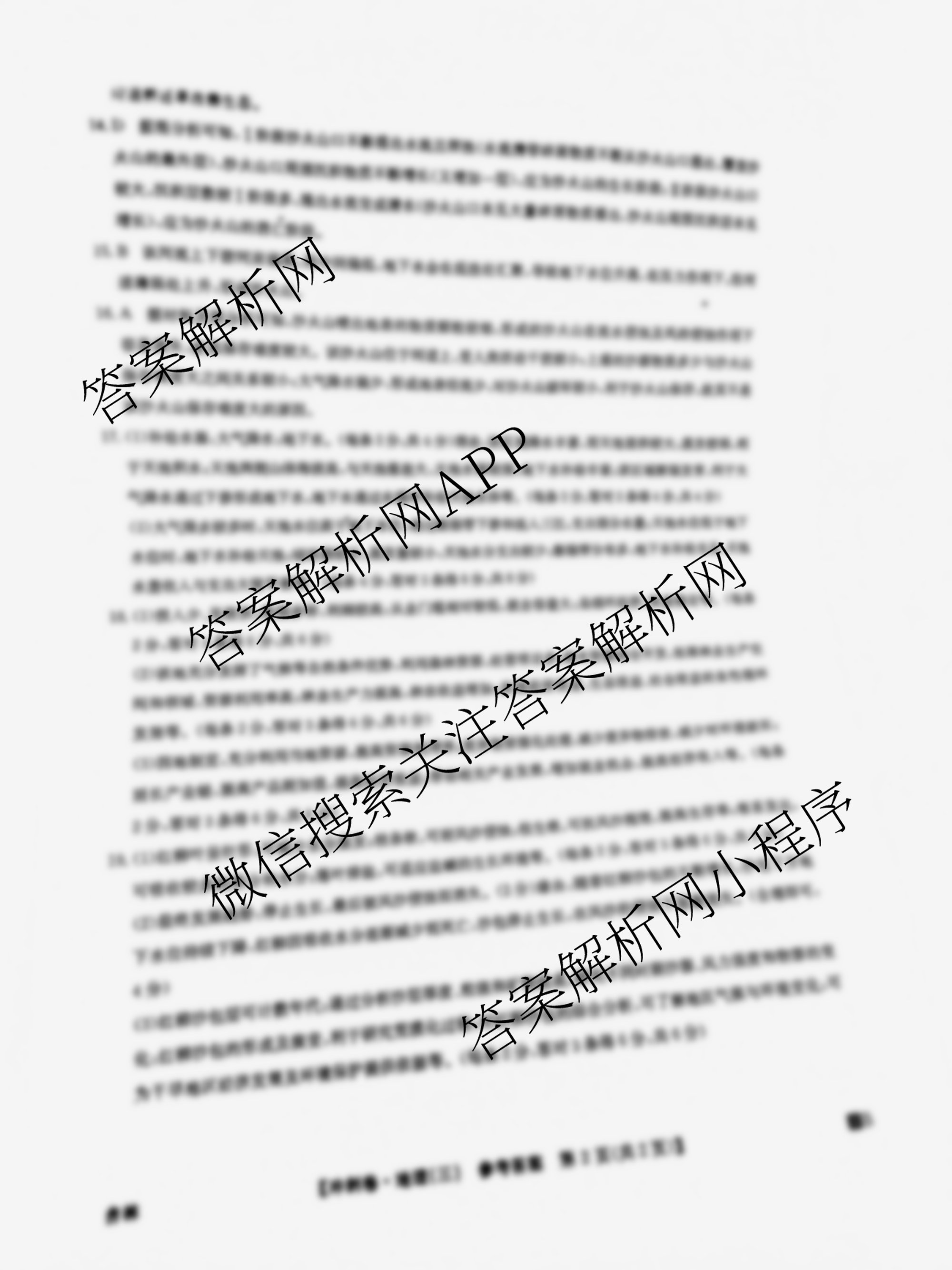 - 高三2024年安徽省普通高中学业水平选择性考试冲刺压轴卷(三)地理(安徽)答案
