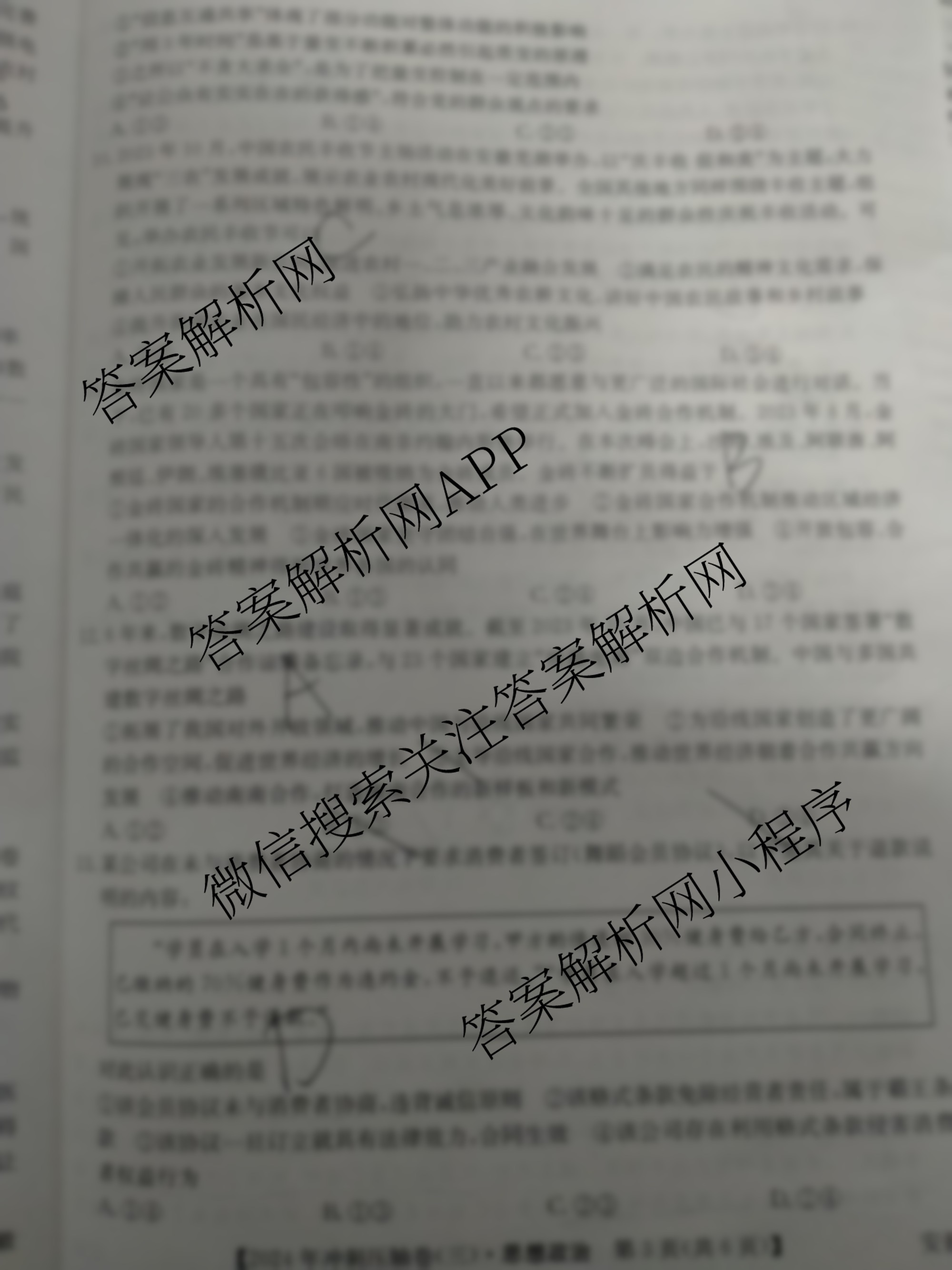 2024年安徽省普通高中学业水平选择性考试冲刺压轴卷(三)政治(安徽)试题