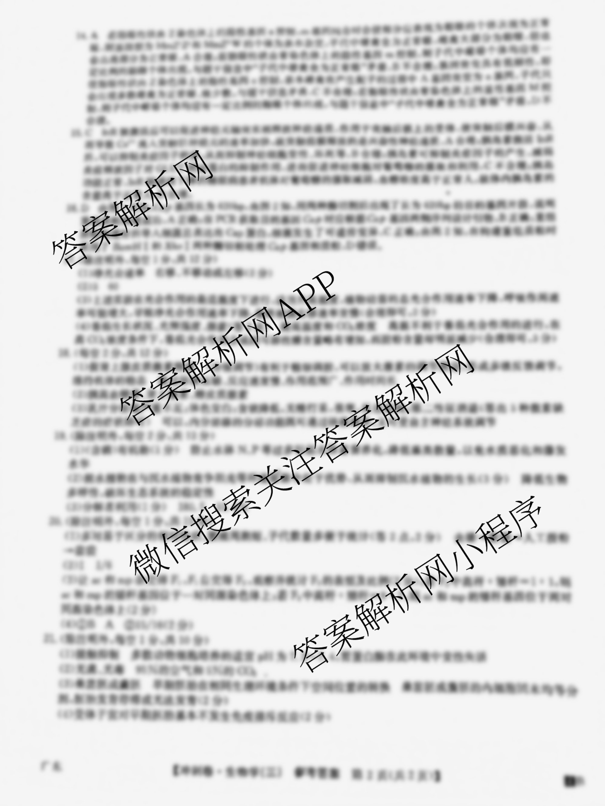 2024年广东省普通高中学业水平选择性考试冲刺压轴卷(三)3生物(广东)答案,目前学英语报答案已经汇总了2024年广东省普通高中学业水平选择性考试冲刺压轴卷(三)3生物(广东)答案的各科答案和试卷,获取更多全国高考冲刺压轴卷答案解析,请在关注本站。