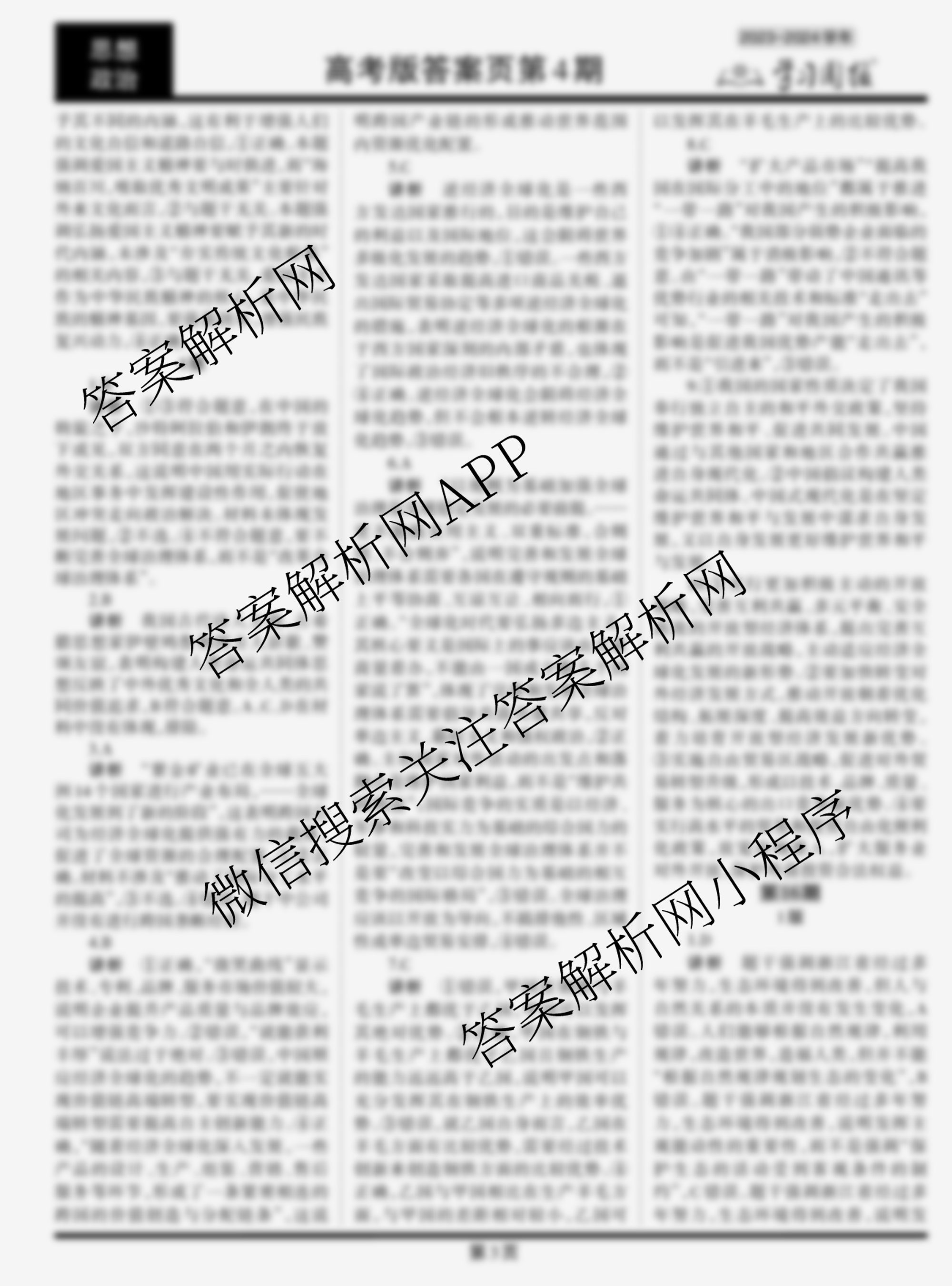 2023-2024 学习周报 政治(高考版)第15期答案