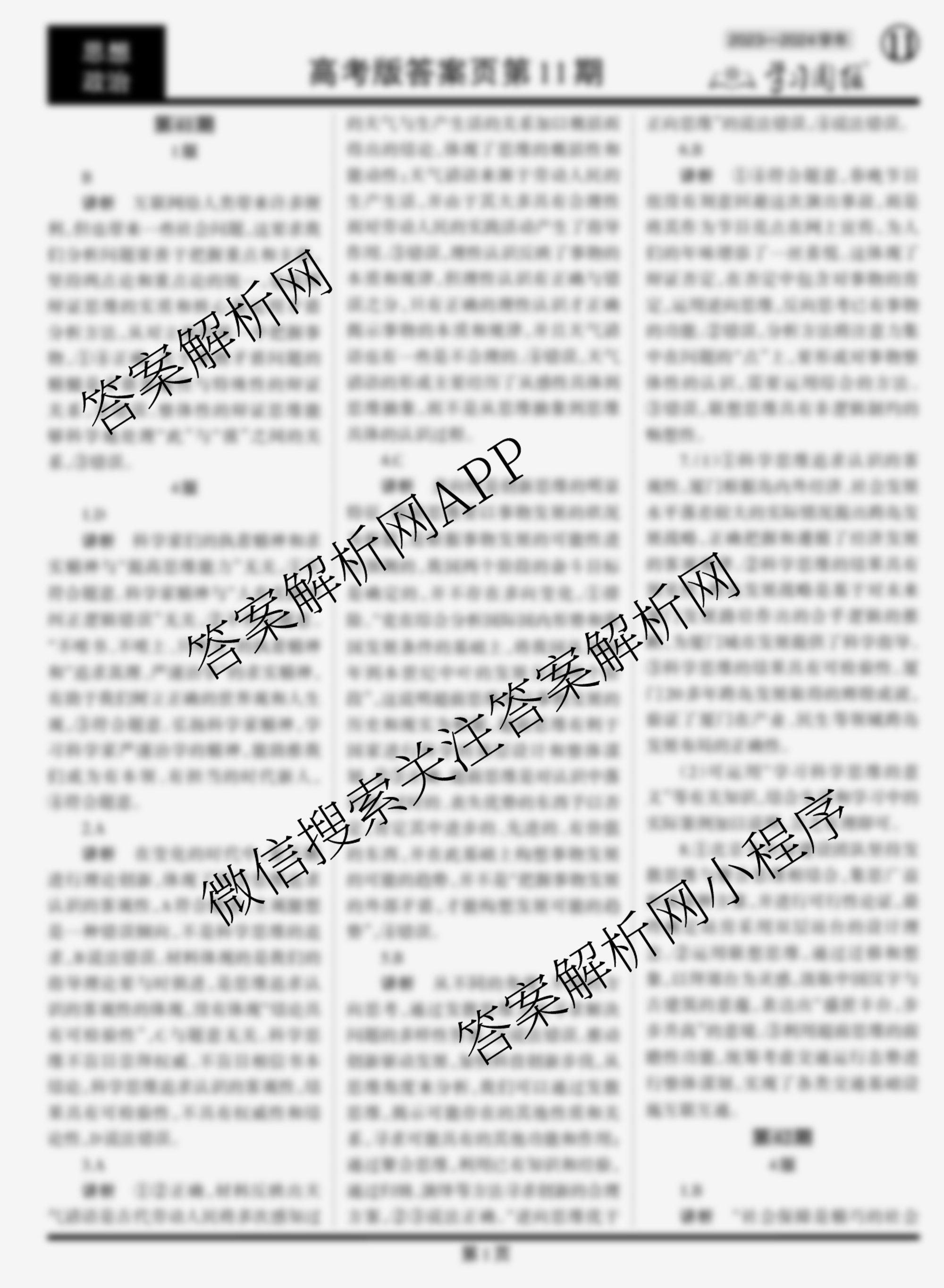 2023-2024 学习周报 政治(高考版)第41期答案