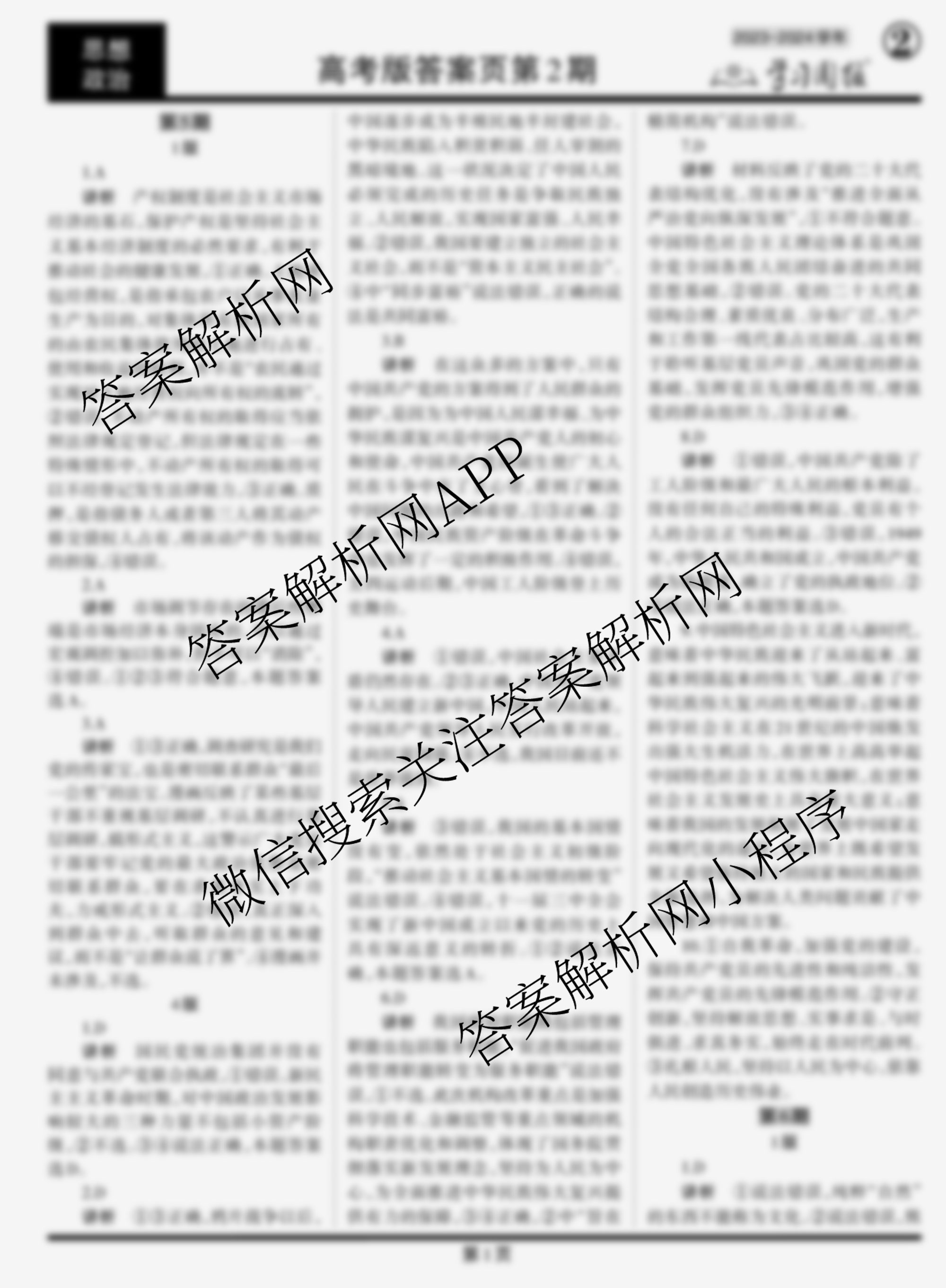 2023-2024 学习周报 政治(高考版)第5期答案