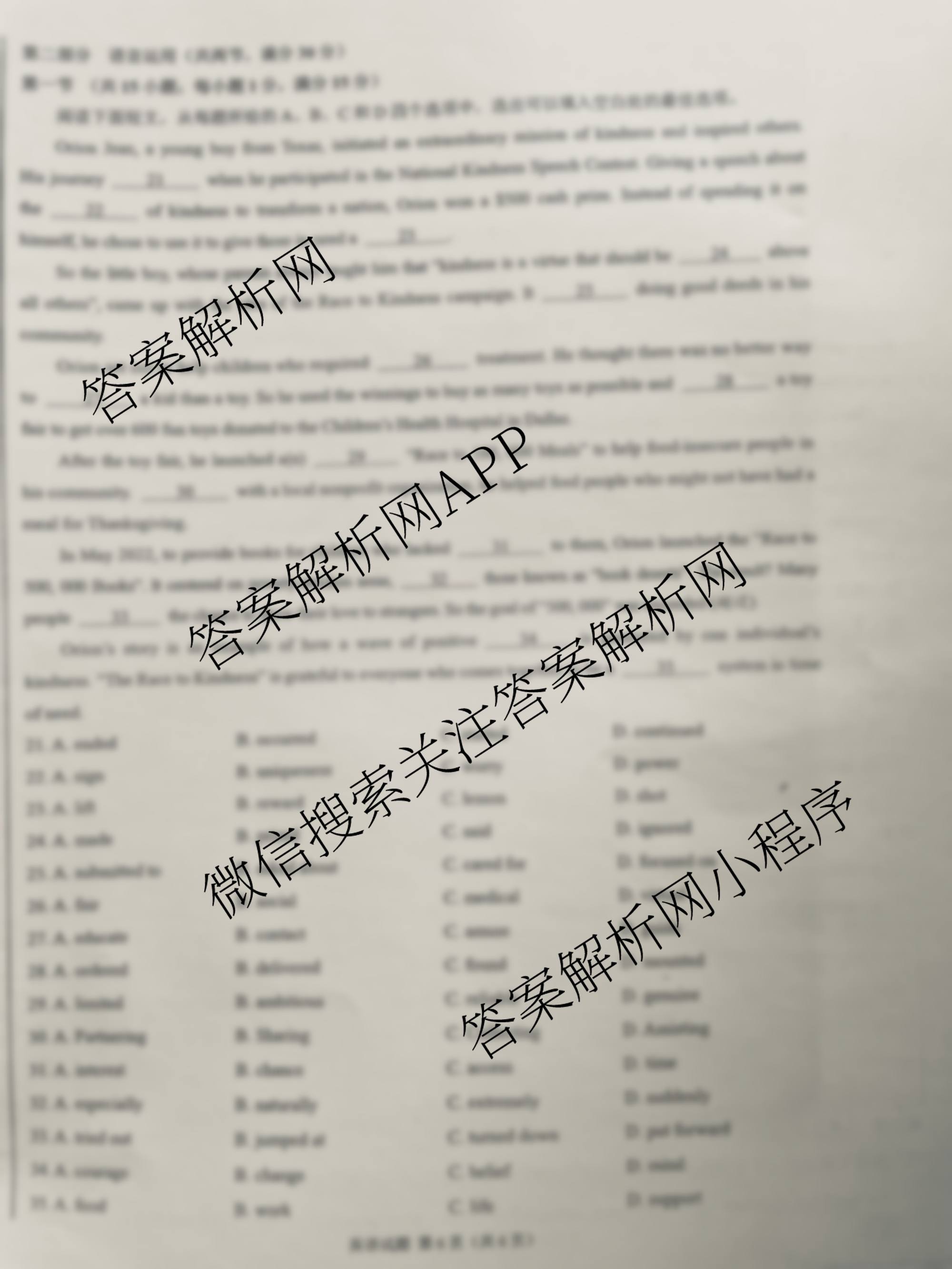 2024届高三5月大联考考后强化卷 英语(新课标卷)试题,目前学英语报答案已经汇总了2024届高三5月大联考考后强化卷 英语(新课标卷)试题的各科答案和试卷,获取更多学科网答案解析,请在关注本站。