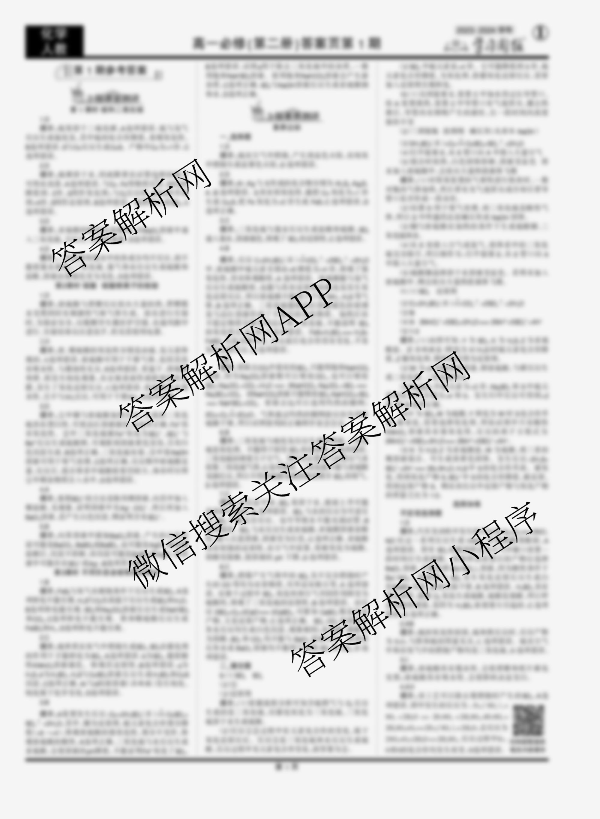 2023-2024 学习周报 化学人教高一必修(第二册)第1期答案