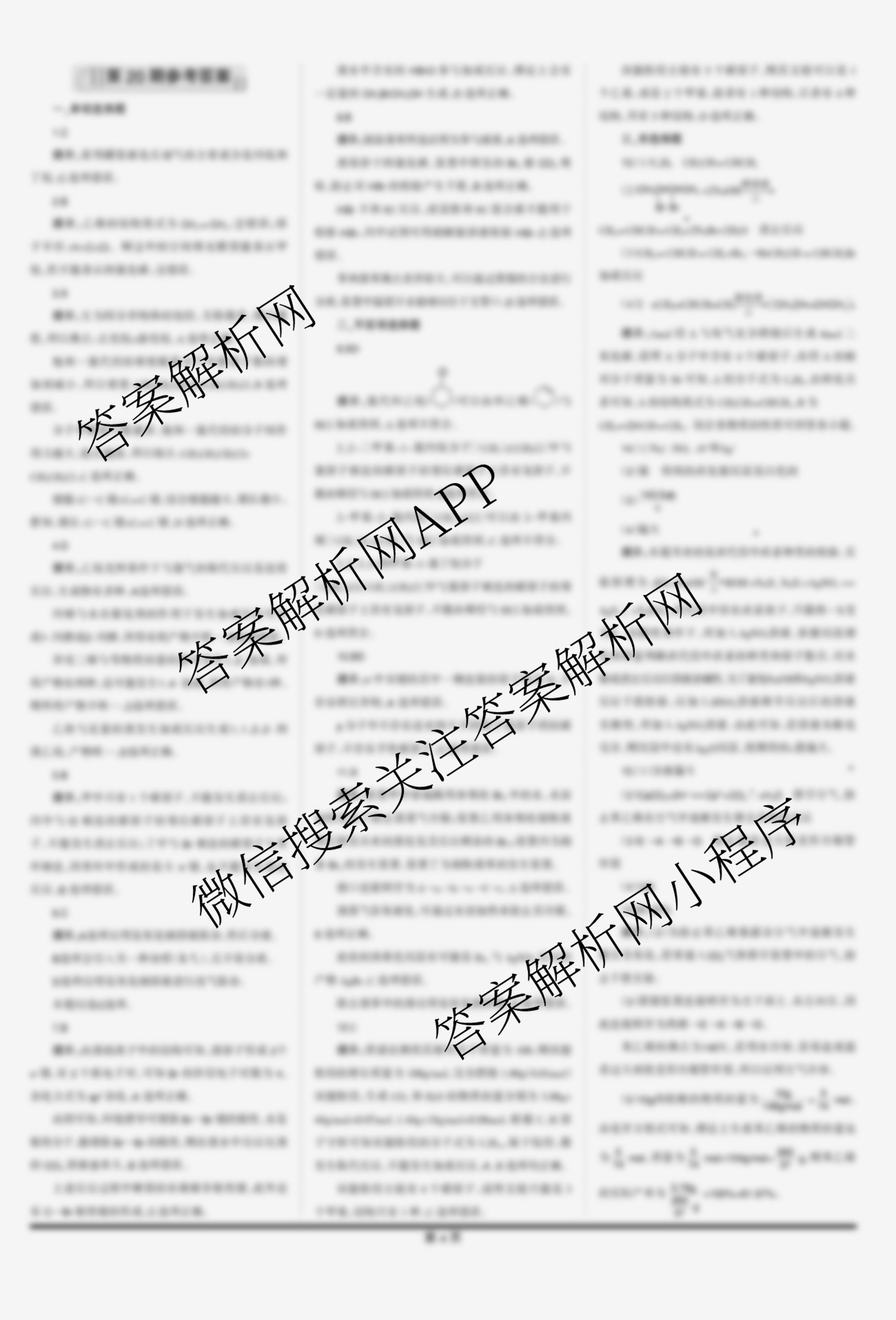 2023-2024 学习周报 化学(高考版)第20期答案