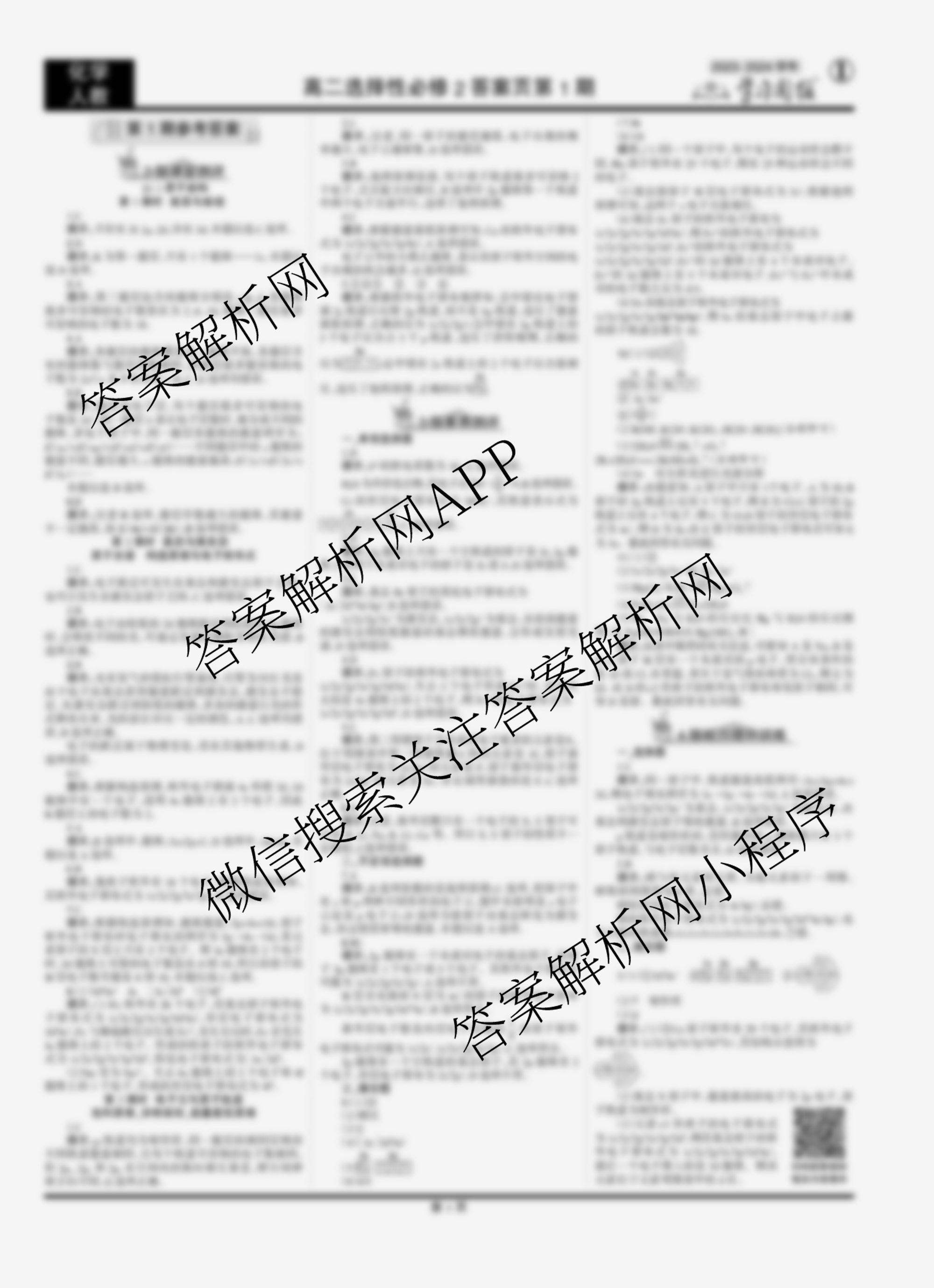 2023-2024 学习周报 化学 人教高二选择性必修2第1期答案