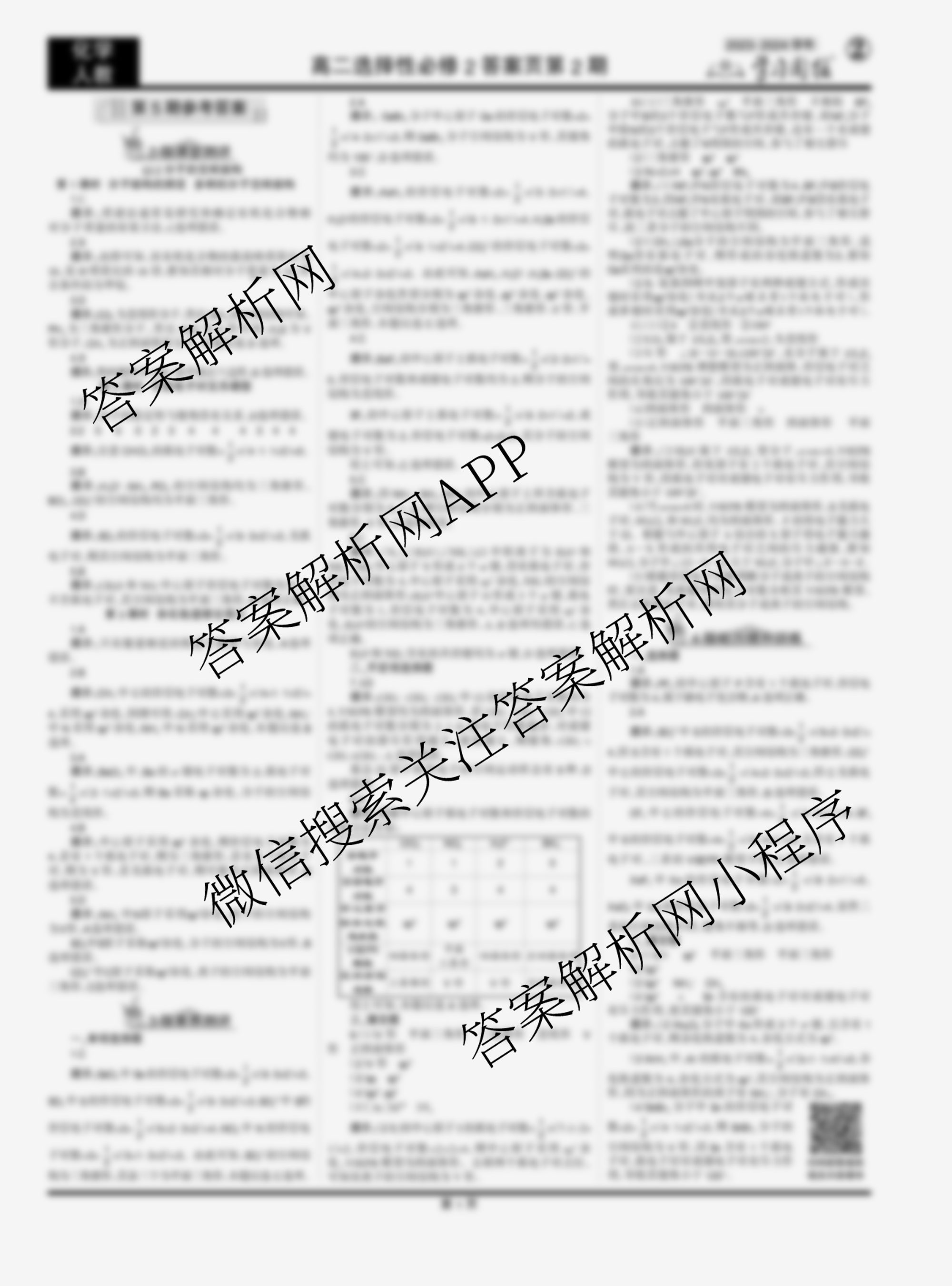 2023-2024 学习周报 化学 人教高二选择性必修2第5期答案